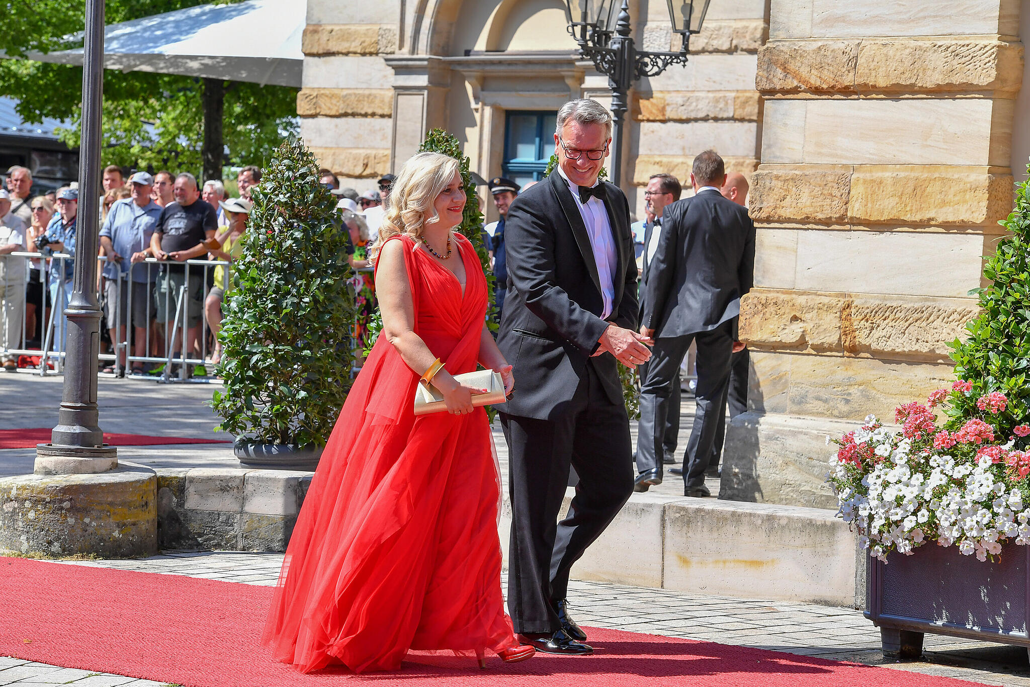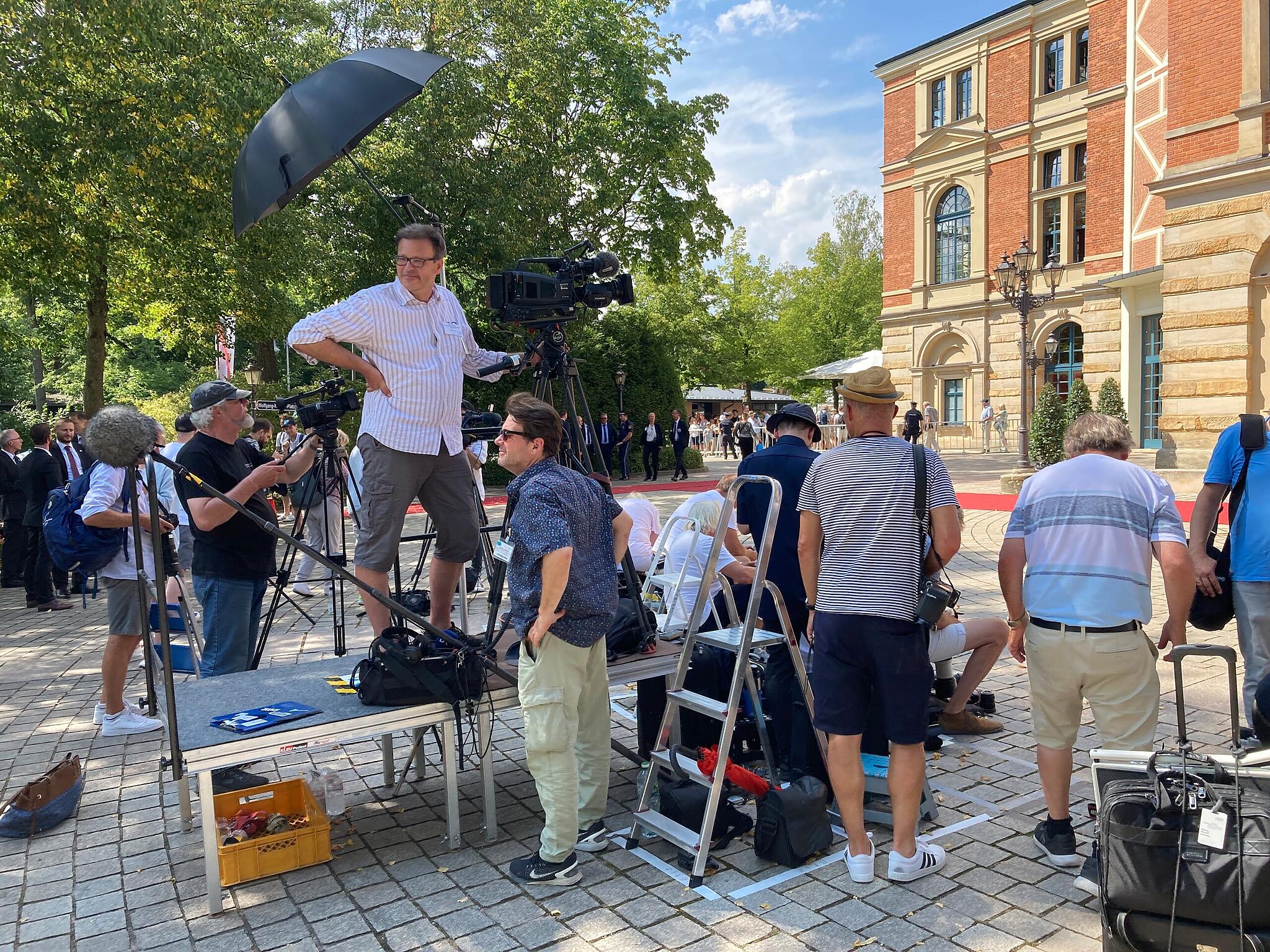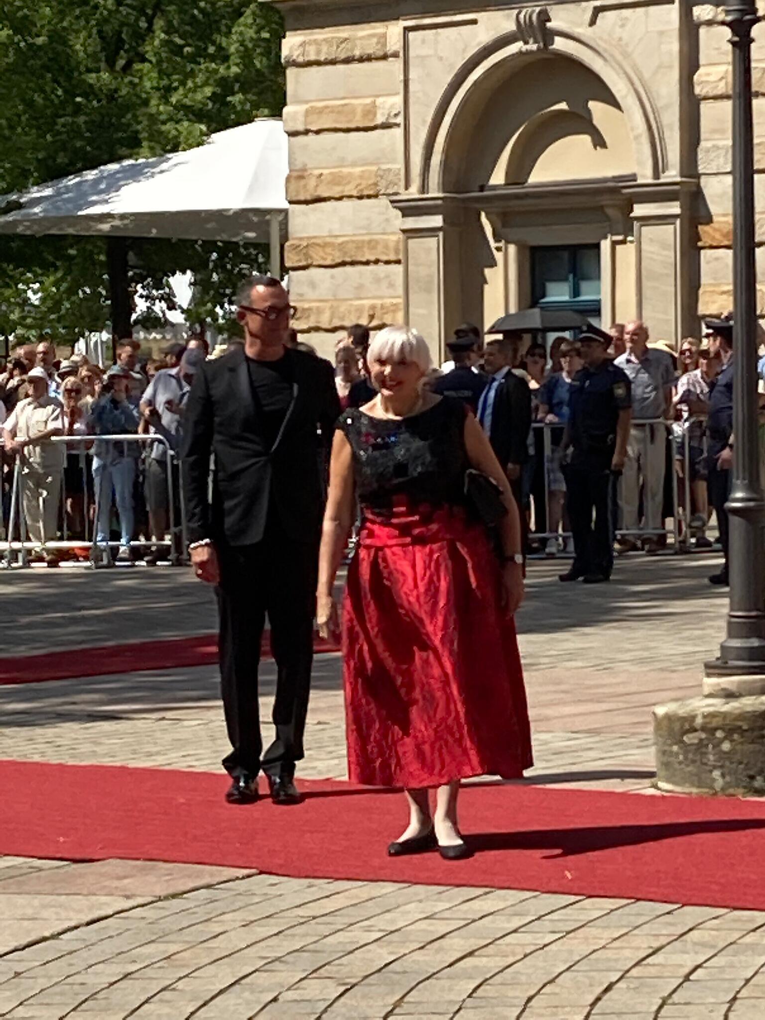 Festspiele Bayreuth: Promi-Auflauf in der Wagner-Stadt Angela Merkel (Mitte), ehemalige Bundeskanzlerin, und ihr Ehemann Joachim Sauer, Markus Söder (l), Ministerpräsident Bayerns, und seine Frau Karin, Thomas Ebersberger (r), Oberbürgermeister Bayreuths // Karl-Josef Hildenbrand (dpa) Hubert Aiwanger mit fränkischer Weinkönigin bei den Festspielen. // Ronald Rinklef Heute ist der Auftakt der Festspiele in Bayreuth. // Daniel Vogl/dpa/Archivbild "Merkel Jugend" bei den Bayreuther Festspielen. // Ronald Rinklef Der Rummel um die Prominenz ist vorbei. // Ronald Rinklef Claudia Roth ist Vizepräsidentin des Deutschen Bundestages // Ronald Rinklef von Redaktion TEILEN  25.07.2022 Bayreuth – Söder, Merkel, Gottschalk – bei der Eröffnung der Richard-Wagner-Festspiele in Bayreuth werden viele prominente Gäste erwartet. Wir sind vor Ort. In Bayreuth beginnen am Montag (16.00 Uhr) die Richard-Wagner-Festspiele. Zuvor werden prominente Gäste über den roten Teppich zum Festspielhaus schreiten – Angela Merkel bleibt auch nach ihrer Kanzlerschaft eine treue Bayreuth-Besucherin, außerdem wird Moderator Thomas Gottschalk erwartet. Wir berichten live. Update von 17.02 Uhr: Die besten Bilder des Promi-Schaulaufens am Eröffnungstag. Edmund Stoiber, ehemaliger Ministerpräsident Bayerns, und seine Frau Karin // FOTOGALERIE Daniel Karmann (dpa) Melanie Huml // FOTOGALERIE Ronald Rinklef Barbara Stamm (2.v.l.) // FOTOGALERIE Ronald Rinklef Emmi Zeulner (2.v.r.) // FOTOGALERIE Ronald Rinklef Bambergs Erzbischof Ludwig Schick (r.) und der Bamberger Domkapellmeister Vincent Heitzer // FOTOGALERIE Ronald Rinklef Hubert Aiwanger (Freie Wähler), Wirtschaftsminister Bayerns, und Eva Brockmann, Fränkische Weinkönigin // FOTOGALERIE Karl-Josef Hildenbrand (dpa) Gloria von Thurn und Taxis // FOTOGALERIE Karl-Josef Hildenbrand (dpa) Angela Merkel (Mitte), ehemalige Bundeskanzlerin, und ihr Ehemann Joachim Sauer, Markus Söder (l), Ministerpräsident Bayerns, und seine Frau Karin, Thomas Ebersberger (r), Oberbürgermeister Bayreuths // FOTOGALERIE Karl-Josef Hildenbrand (dpa) Angela Merkel (2.vl), ehemalige Bundeskanzlerin, und Ehemann Joachim Sauer (l) stehen mit Markus Söder, Ministerpräsident Bayerns, und seiner Frau Karin zusammen vor der Eröffnung der Bayreuther Richard-Wagner-Festspiele im Festspielhaus auf dem Grünen Hügel. // FOTOGALERIE Daniel Karmann (dpa) Markus Söder, Ministerpräsident Bayerns, und seine Frau Karin // FOTOGALERIE Daniel Karmann (dpa) Markus Söder, Ministerpräsident Bayerns, und Katharina Wagner // FOTOGALERIE Karl-Josef Hildenbrand (dpa) Michael "Michl" Müller // FOTOGALERIE Daniel Karmann (dpa) Udo Wachtveitl kommt in Begleitung zu der Eröffnung der Bayreuther Richard-Wagner-Festspiele // FOTOGALERIE Daniel Karmann (dpa) Markus Rinderspacher (SPD) und seine Frau Christine // FOTOGALERIE Karl-Josef Hildenbrand (dpa) Francis Fulton-Smith // FOTOGALERIE Daniel Karmann (dpa) Thomas Gottschalk (l), Karina Mroß und Markus Söder, Ministerpräsident Bayerns // FOTOGALERIE Karl-Josef Hildenbrand (dpa) Dagmar Wöhrl // FOTOGALERIE Karl-Josef Hildenbrand (dpa) Claudia Roth (Bündnis 90/Die Grünen), Kulturstaatsministerin // FOTOGALERIE Daniel Karmann (dpa) Update von 16.24 Uhr: Jetzt geht es los mit "Tristan und Isolde": Update von 16.19 Uhr: Das war's. Alles, was prominent ist, sitzt im Saal. Jetzt reklamiert Richard Wagner und seine Musik alle Aufmerksamkeit für sich. Der Vorhang im Festspielhaus hebt sich. Der Star-Kult hat Sendepause. Update von 16.16 Uhr: Auch der ehemalige bayerische Ministerpräsident Edmund Stoiber gibt sich die Ehre. Update von 16.12 Uhr: Mit ihrer zur lustvollen Exzentrik neigenden Gewandung könnten Thomas Gottschalk und seine Freundin Karina Mroß später ohne Weiteres auch auf der Bühne stehen. Thomas Gottschalk mit Freundin Karina Mroß bei den Bayreuther Festspielen // Karl-Josef Hildenbrand/dpa Update von 16.11 Uhr: Auch der Bamberger Erzbischof Ludwig Schick besucht die Eröffnung der Festspiele. Update von 16.10 Uhr: Kulturstaatsministerin Claudia Roth dürfte froh darüber sein, heute einmal nicht über die Documenta fifteen und deren unverändert schwelenden Antisemitismus-Skandal sprechen zu müssen.Zwar sind auch Richard Wagner und die Geschichte der Bayreuther Festspiele nicht frei von antisemitisch verirrtem Denken. Im Gegensatz zur Documenta ist diese schmachvolle Vergangenheit aber längst Gegenstand kritischer Aufarbeitung. Claudia Roth (Bündnis 90/Die Grünen), Kulturstaatsministerin // Daniel Karmann (dpa) Update von 16.06 Uhr: Die aus Bamberg stammende Staatsministerin Melanie Huml hat sich für ein leuchtend rotes Kleid entschieden. Ihre Ehemann Markus begleitet sie. Staatsministerin Melanie Huml bei den Bayreuther Festspielen // Ronald Rinklef Update von 15.54 Uhr: Frau Merkel ist da! Ehemalige Kanzlerin Angela Merkel mit Mann Joachim Sauer // Ronald Rinklef Man konnte im vergangenen Jahr des Öfteren den Eindruck gewinnen, als säße der größte Fan von Angela Merkel in der bayerischen Staatskanzlei. Entsprechend warmherzig und mit scherzhaft ausgebreiteten Armen empfängt Markus Söder heute die Kanzlerin und ihren Ehemann Joachim Sauer. Angela Merkel ist von Kopf bis Fuß in lichtes, Hoffnung spendendes Grün gekleidet. Will sie allen, die schon vor der nächsten Gasrechnung zittern, damit ein Zeichen der Zuversicht schicken? Man hätte es von der Kanzlerin gerne gewusst. Allein, sie beantwortet keine Fragen. Wagner wartet. Update von 15.45 Uhr: Auch Markus Rinderspacher, Vizepräsident des Bayerischen Landtags, fährt am Festspielhaus vor. Dass seine Ankunft viele fragende Gesichter provoziert, sagt viel aus über den Zustand der bayerischen SPD. Oder über die politische Bildung von Journalisten. Update von 15.36 Uhr: Dorothee Bär kommt in Begleitung ihres Ehemanns Oliver, dem Landrat von Hof. Beide müssen am bislang längsten vor den Fotografen posieren. Ihr rosafarbenes Kleid hat Dorothee Bär in ihrem Wa