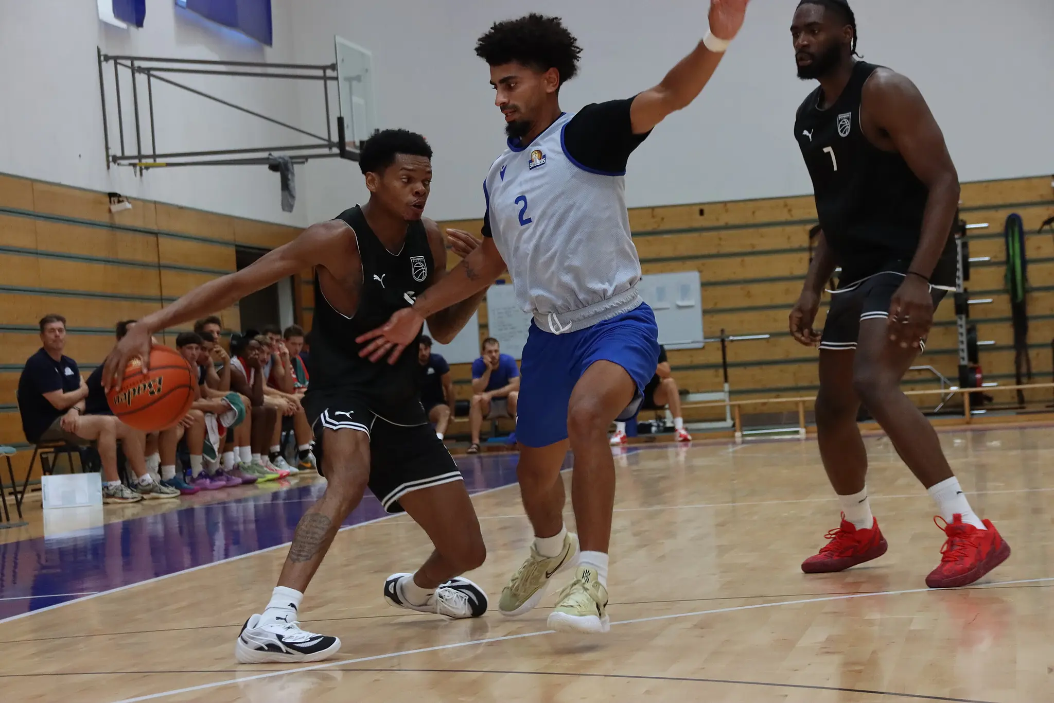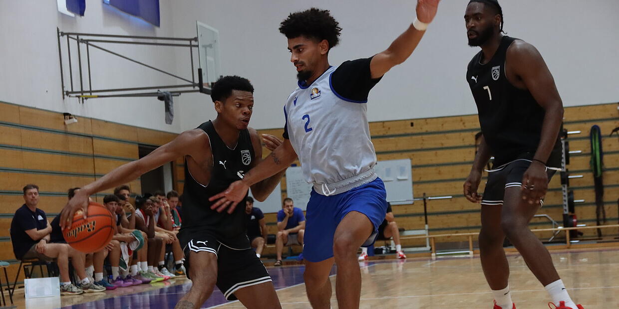 Basketball-Testspiel Bamberg Baskets: Knappe Niederlage bei BBL-Aufsteiger Bambergs neuer Aufbauspieler Ronaldo Segu (links) im Duell mit dem Frankfurter Trey Calvin. // Bamberg Baskets von Redaktion TEILEN  15.08.2024 Bamberg – Die Mannschaft von Trainer Anton Gavel verliert einen nicht-öffentlichen Test bei den Frankfurt Skyliners mit 89:94. Neuzugang Noah Locke wird Topscorer. Ein Wiedersehen gibt es mit Patrick Heckmann. Das neuformierte Team der Bamberg Baskets hat am Donnerstagnachmittag ein Testspiel bei den Frankfurt Skyliners unter Ausschluss der Öffentlichkeit mit 89:94 verloren. Die Partie in Basketball City Mainhattan, dem Trainingszentrum der Frankfurter, war über die kompletten 40 Minuten eng. Die Führung wechselte 15 Mal. Bamberger Topscorer war Noah Locke. Ein Wiedersehen gab es mit Patrick Heckmann, der aktuell die Vorbereitung mit dem BBL-Aufsteiger absolviert. Für das Team von Trainer Anton Gavel war es der zweite Test. Am Sonntag hatten die Bamberger gegen Bundesliga-Absteiger Crailsheim Merlins - ebenfalls unter Ausschluss der Öffentlichkeit - gespielt. Filip Stanic erzielt zwei Punkte. // Bamberg Baskets Erster öffentlicher Test am Dienstag Das erste öffentliche Testspiel findet am kommenden Dienstag um 19 Uhr gegen den Mitteldeutschen BC in Strullendorf statt. Zutritt erhalten exklusiv Dauerkarteninhaber (Tickets sind im Freak-City-Store) erhältlich. Auf großer Bühne präsentiert sich das neue Bamberger Team bereits am Samstagnachmittag bei einem Teamevent auf dem Maxplatz. Ab 14.30 Uhr startet eine Autogrammstunde mit dem kompletten Team. Lesen Sie auch: Neu bei den Baskets (1) Ronaldo Segu: Ein Basketballer mit Faible für Fußball Ronaldo Segu ist der neue Aufbauspieler der Bamberg Baskets. Wie der US-Amerikaner zu seinem Vornamen kam, was seine größten Stärken auf dem Feld sind und mit welchen Ex-Bambergern er in Kontakt steht.