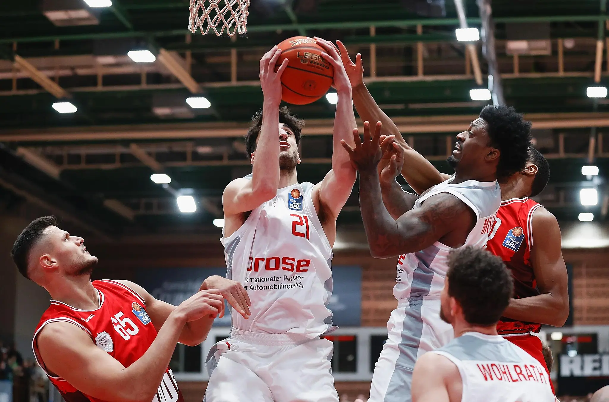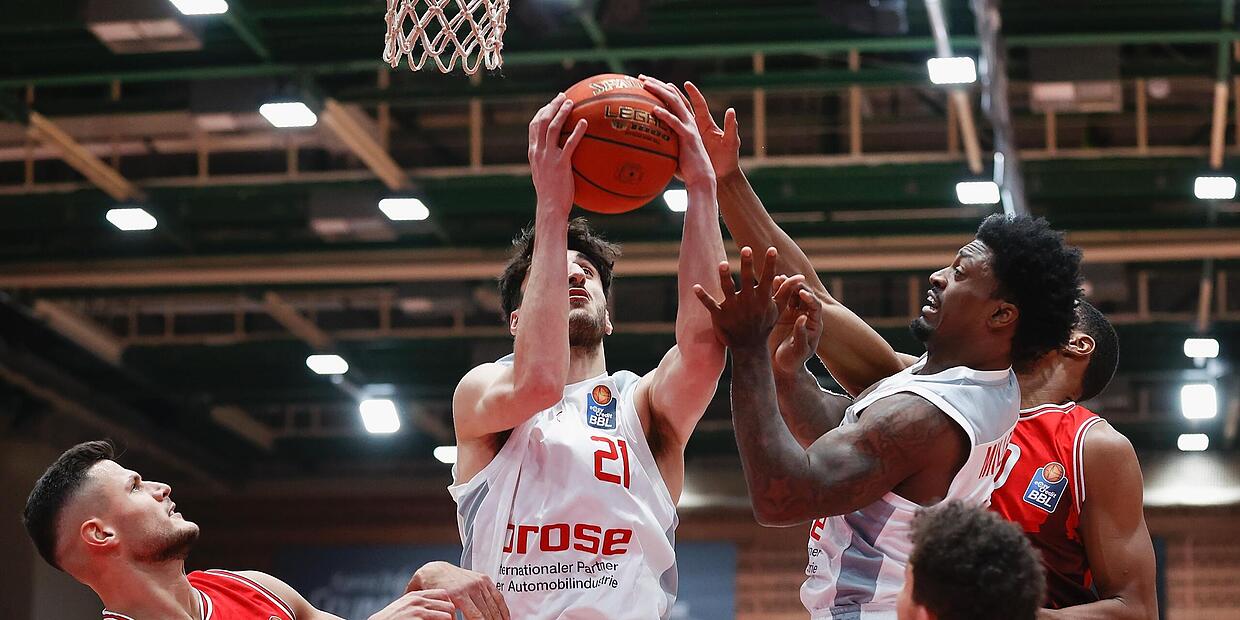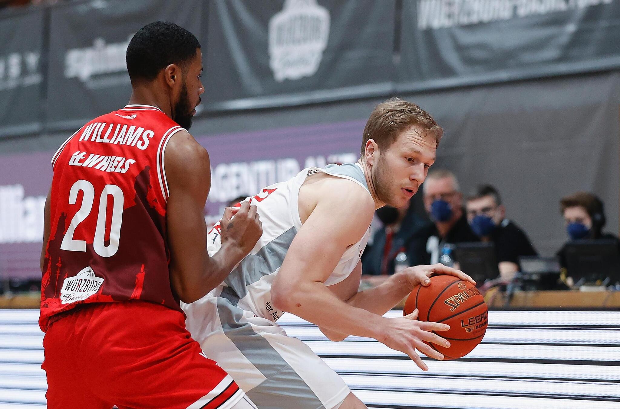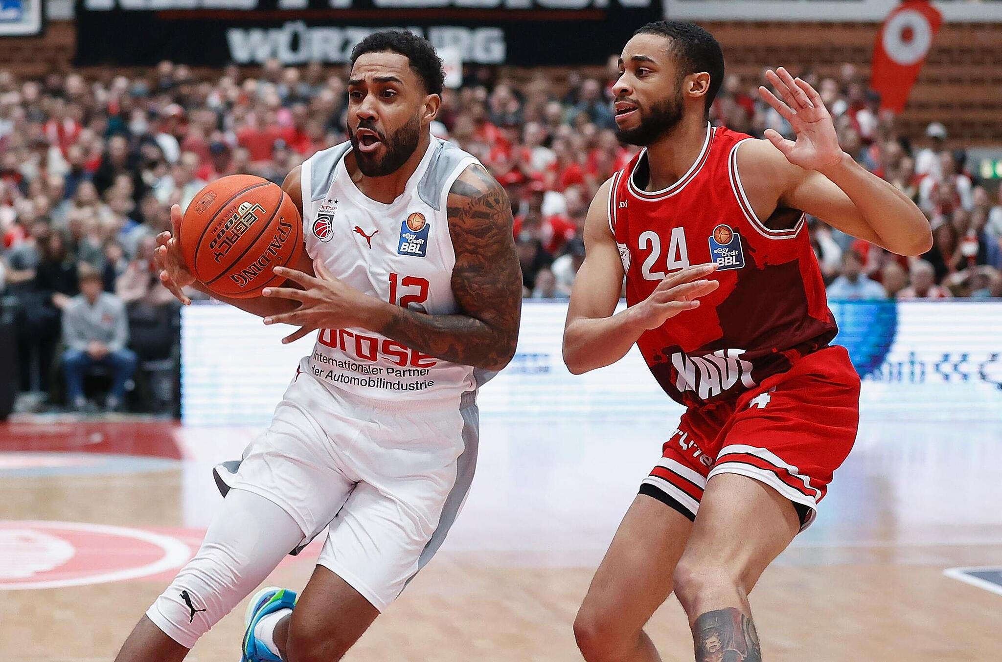 Basketball Bamberg dreht Frankenderby im Schlussviertel Gabriel Chachashvili (am Ball) greift sich vor seinenm Würzburger Pendant Filip Stanic (links) einen Rebound. Sein Mitspieler Patrick Miller muss nicht mehr eingreifen. // Heiko Becker von Udo Schilling TEILEN  04.01.2023 Bamberg – Hart umkämpft und bis in die Schlussminute spannend. So lief das Frankenderby zwischen Würzburg und Bamberg. Am Ende hat das Brose-Team knapp die Nase vorn, dank seines jüngsten Spielers. Ein weiterer Befreiungsschlag ist den Basketballern von Brose Bamberg zum Start ins neue Jahr gelungen. Bei den Würzburg Baskets gewann das Team von Trainer Oren Amiel am Mittwochabend das Frankenderby mit 79:73 (40:43), setzte sich damit etwas von den Abstiegsplätzen ab und nähert sich den Play-off-Rängen. Der Brose-Fanblock in Würzburg war gut gefüllt und skandierte am Ende „Derbysieger“. // Heiko Becker Vor 3140 Zuschauern, darunter rund 200 Bamberger Fans, in der seit langem wieder einmal ausverkauften Würzbuger „Turnhölle“ entschieden die Oberfranken das umkämpfte Derby dank ihres besseren Rebounding (49:32) vor allem unter dem gegnerischen Korb. Brose-Matchwinner Gabriel Chachashvili bedankte sich nach seinen 20 Punkten bei seinem Team. „Meine Mitspieler haben mich gefunden. Neben unserer Reboundüberlegenheit war die Veränderung in unserer Pick-and-roll-Verteidigung ein Schlüssel zum Sieg“, sagte der 23-jährige Center. Für Bamberg geht es am Samstag (18 Uhr) mit dem Heimspiel gegen den Tabellenvierten Oldenburg weiter. Die Würzburger bestreiten in Bayreuth gleich das nächste fränkische Duell. Bundesliga Würzburg Baskets – Brose Bamberg 73:79 (19:17, 24:23, 19:24, 11:15) Nach durchwachsenem Start auf beiden Seiten gewann die Partie an Fahrt. Brose-Kapitän Christian Sengfelder und Chachashvili sorgten unter dem Würzburger Brett für die ersten Gäste-Punkte. Die Gastgeber scorten dagegen variabler und kamen sowohl in der Zone durch Filip Stanic als auch aus der Distanz durch Cameron Hunt und Felix Hoffmann zu ihren Zählern. So behielten die Unterfranken stets knapp die Nase vorn, da bei Bamberg im ersten Viertel keiner der sieben Dreierversuche den Weg in den Würzburger Korb fand. Brose-Kapitän Christian Sengfelder (rechts), hier gegen Xeyrius Williams begann stark, hatte am Ende aber mit fünf von zwölf Würfen eine bescheidene Wurfquote zu Buche stehen. // Heiko Becker Brose-Neuzugang Gerel Simmons, der nach viereinhalb Minuten für den mit einer blutenden Nase auf die Bank geschickten Kevin Wohlrath erstmals aufs Feld kam, war zunächst kein Faktor in der Offensive und kam lediglich auf vier Punkte. Nach ausgeglichenem ersten Abschnitt (19:17) war bei Bamberg Chachashvili stets zur Stelle und sorgte mit weiteren sechs Zählern für die zweite Führung seines Teams, die Sengfelder auf 31:28 erhöhte und damit Baskets-Trainer Sasa Filipovski zu einer Auszeit zwang. Dessen Team fing sich im Anschluss wieder und kam, auch dank der Vielzahl an Bamberger Ballverlusten (insgesamt 16), über O’Showen Williams und den starken Stanic wieder heran. Brose-Neuzugang Gerel Simmons (am Ball) kam in seinem zweiten Spiel kaum zur Geltung. Hier zieht er gegen den ebenfalls nicht überzeugenden Würzburger Cameron Hunt zum Korb. // Heiko Becker Eine Auszeit Amiels beim 35:35 ging allerdings nach hinten los. Würzburg zog auf 42:35 weg, ehe Bell mit fünf Punkten, darunter der einzige Dreier der Gäste bis dahin, noch auf drei Zähler zur Pause verkürzte (43:40). Auch nach dem Seitenwechsel kamen die Unterfranken weiter zu einfach zum Erfolg. Nun taute bei Würzburg Xeyrius Williams auf und sorgte für ein Sechs-Punkte-Polster. Ausgerechnet Patrick Miller, der bisher nicht als Distanzwerfer auffiel, traf nun zwei Dreier und hielt Bamberg auf Schlagdistanz. Chachashvili baute seine Punktekonto weiter aus, ehe Solomon Young per Dreier das Blatt wendete und Simmons mit seinen ersten Punkten auf 57:61 (28. Min.) stellte. Mit der Bamberger Zonenverteidigung kamen die Gastgeber in dieser Phase nicht zurecht. Spannend blieb die Partie aber weiter, denn beide Teams gestatteten mit ihren Fehlern dem Gegner, immer wieder zurückzukommen. Die Oberfranken starteten mit einer 64:62-Führung ins Schlussviertel. Spencer Reaves mit seinem zweiten Dreier und Simmons per Fast-Break sorgten blitzschnell für das 71:62 aus Gästesicht. Da den Gastgebern gegen die nun verbesserte Brose-Verteidigung nicht viel einfiel und Chachashvili physisch gegen Stanic gut dagegenhielt, mussten die Baskets-Fans viereinhalb Minuten auf die ersten Punkte durch Whittaker warten. Die Punktausbeute von Jaromir Bohacik (am Ball) blieb mit sechs überschaubar, der Tscheche war aber Bambergs bester Rebounder mit neun Abprallern. // Heiko Becker Würzburg mit nur elf Punkten im Schlussviertel Auch die folgende Offensivflaute der Gäste bestraften die Unterfranken nicht. Bamberg blieb dank Chachashvili vorn (68:73, 37.). Das Derby blieb aber bis in die Schlussminute spannend, nachdem Hunt auf 73:75 verkürzt hatte. Sengfelder nach Assist von Miller sowie Bohacik von der Freiwurflinie brachten den Zittersieg nach Hause. Brose-Spieler des Spiels Gabriel Chachashvili erzielte mit 20 Punkten seinen Bundesliga-Bestwert. Seine Wurfquote aus dem Zweierbereich war stark (10 von 11). Der 23-jährige Israeli fischte sich sechs seiner acht Rebounds unter dem Würzburger Brett. Dazu kamen vier Ballgewinne, allerdings auch vier Turnovers, die zu einem Effektivitätswert von 27 führten. Lesen Sie auch: Brose um die Welt Zwei Bamberger Ex-Trainer haben neue Jobs Meistercoach Dirk Bauermann kehrt zum Deutschen Basketball-Bund zurück. Der Italiener Luca Banchi haucht einem französischen Erstligisten neues Leben ein. Basketball Jessica Miller zieht es zurück zu Ex-Klub Der neue Arbeitgeber der ehemaligen Coburger Cheftrainerin Jessica Miller steht fest.