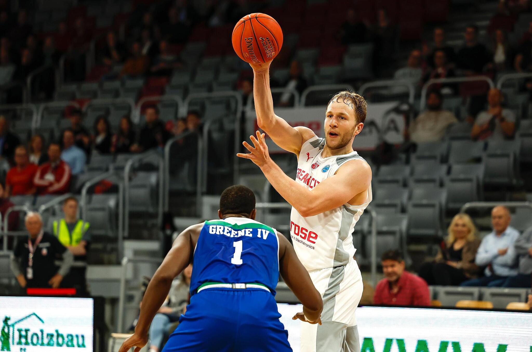 Basketball Brose nimmt gegnerische Schützen an kurze Leine Kein Durchkommen für Josh Bostic von Anwil Wloclawek gibt es hier zwischen Solomon Young (links) und Gabriel Chachshvili. // Daniel Löb von Udo Schilling TEILEN  11.01.2023 Bamberg – Bamberg verpasst dem offensivstarken Team von Anwil Wloclawek einen Maulkorb. Im dritten Viertel gestattet das Brose-Team den Polen fast zehn Minuten keinen Punkt. Am Ende muss noch gezittert werden. Hunde die bellen, beißen nicht. Die als Rottweiler bezeichneten Basketballer von Anwil Wloclawek bellten am Mittwochabend in der Brose-Arena nur, gebissen haben dagegen die Bamberger im dritten Zwischenrundenspiel im Fiba-Europe-Cup (FEC). Die Mannschaft von Oren Amiel erwies sich als das aggressivere Team und gewann mit 73:69 (34:37). Mit dem zweiten Sieg in der Gruppe L wahrten die Oberfranken ihre Chancen aufs Erreichen des Viertelfinals. „Das Wichtigste war der Sieg, den haben wir gebraucht“, sagte Amiel hinterher. Immer wieder kam Patrick Miller zum Abschluss in Korbnähe. Hier erzielt er zwei seiner 19 Punkte gegen Lee Morre. // Daniel Löb Im zweiten Gruppenmatch gewannen die bis dato sieglosen Zyprioten von Keravnos BC gegen das rumänische Team aus Oradea mit 77:75. Fiba-Europe-Cup, Gruppe L Brose Bamberg – Anwil Wloclawek 73:69 (16:15, 18:22, 20:9, 19:23) Wie erwartet entwickelte sich ein physisch geführtes Spiel. Die Gäste, ohne den Ex-BBL-Spieler Szymon Szewczyk, dafür mit ihrer US-amerikanischen Neuverpflichtung Malik Williams (2,11 m) angetreten, verteidigten bissig und beherrschten vor allem ihr eigenes Brett. Nach dem 5:5 nutzten sie ein unsportliches Foul von Jaromir Bohacik, um sich auf 11:5 abzusetzen. Nach einer Auszeit Amiels wurde zumindest die Verteidigung der Oberfranken besser. Lesen Sie auch Brose Bamberg Umbruch: Stoschek gibt jede Menge Macht ab Brose zieht sich als Alleingesellschafter bei den Bamberger Basketballern zurück und wirbt um neue Eigentümer – und macht dafür Zugeständnisse an Interessenten. Auch ein neuer Teamname wird gesucht. Im Angriff war noch viel Sand im Getriebe. Offene Würfe verfehlten reihenweise das Ziel. Die 7 stand bis zur 7. Minute auf der Anzeige bei Bamberg. Da die Polen aber ebenfalls einige Fahrkarten schossen (1 von 9 Dreier) und sich Ballverluste erlaubten, blieb die Partie im ersten Viertel offen. Über einige Freiwürfe zog Bamberg sogar mit 16:15 in Front. Christian Sengfelder traf zwar nur drei seiner neun Würfe aus dem Feld, aber alle sechs Freiwürfe. Dazu holte er neun Rebounds. // Daniel Löb Die Partie blieb von der Verteidigung und den hohen Fehlerquoten beider Teams geprägt, bis beim 20:23 Patrick Miller übernahm und mit sieben Punkten in Serie, darunter einen spektakulären Dunking trotz Fouls, auf 27:23 stellte (14. Minute). Der gefürchtete 60-Prozent-Dreierschütze Philipp Greene antwortete mit zwei wilden Treffern. Eine über vierminütige Offensivflaute der Bamberger nutzten die Gäste zu einem 9:0-Lauf (27:32). Von den hohen Trefferquoten vom Oldenburg-Spiel war nichts mehr zu sehen (Feldwurfquote 30 Prozent). „Ich denke, nach dem tollen Sieg am Samstag waren wir etwas leer – das ist menschlich“, sagte Amiel dazu. 13 Offensivrebounds nutzten Chris Sengfelder & Co bis dahin nur zu zwei Punkten. So ging Wloclawek mit einer 37:34-Führung in die zweite Hälfte. Keine Gefangenen macht hier Luke Petrasek (links) gegen Patrick Heckmann, der alle seine fünf Punkte von der Freiwurflinie erzielte. // Daniel Löb Wloclawek fast zehn Minuten ohne Punkt Die war weiter hart umkämpft. Fünf Punkte von Kevin Wohlrath beantwortete der Gast mit drei Dreiern zum 39:46 (23.). Das ließen Miller und der bis dahin schwach werfende Gerel Simmons nicht auf sich sitzen und trafen ebenfalls aus der Distanz. Nachdem der Stand von 47:46 sich über drei Minuten nicht veränderte, erhöhten Sengfelder und Heckmann bis zum Viertelende auf 54:46. Die Polen blieben in dieser Phase gegen die starke Brose-Defensive ohne Zähler, allerdings verpassten es die Gastgeber in dieser Phase, sich noch deutlicher abzusetzen. Nach gut zwei Minuten in Viertel Nr. 4 beendete Lee Moore mit einem Freiwurftreffer die fast zehnminütige Punkteflaute der Polen. Die Bamberger hatten dem Rottweiler einen Maulkorb verpasst. Spannende Schlussphase Jaromir Bohacik stellte im Gegenzug zum 60:47, der höchsten Führung bis dahin (33.). Kurz darauf betrug das Polster 15 Punkte. Doch die Polen profitierten von einigen ausgelassenen Großchancen der Bamberger und waren 86 Sekunden vor Schluss auf sieben Zähler (72:65) dran. Der Blutdruck von Amiel stieg, weil sein Team das Spiel nach Fehlwürfen und Ballverlusten nicht beendete. Greene verkürzte auf 69:72 aus Sicht der Polen, 20 Sekunden waren da noch auf der Uhr. Brose-Trainer Oren Amiel musste am Ende noch um den Sieg bangen. „Wir haben gewonnen, das ist die Hauptsache“, sagte der Israeli hinterher. // Daniel Löb Heckmann nahm mit einem Freiwurftreffer auf der Gegenseite den Druck vom Kessel. Den letzten Fehlwurf der Gäste holte sich Solomon Young (11 Rebounds), und der Sieg war ins Ziel gebracht gegen ein Team, das Bamberg über 20 Punkte unter seinem Schnitt von 91,5 Zählern hielt. Wohlrath scherzte, dass er es gerne etwas spannend wolle, führte die Schwächephase am Ende auf „Konzentrationsmängel“ zurück. „Als wir aufmerksam waren, haben wir sie gut kontrolliert. Gewonnen ist gewonnen, wir nehmen den Sieg mit“, meinte der 27-Jährige. Brose-Spieler des Spiels Patrick Miller war erneut der Energizer im Brose-Spiel, als es nötig war. Am Ende hatte das Kraftpaket 19 Punkte auf seinem Konto bei starker Trefferquote von 54 Prozent. Für seine beiden Dreier benötigte er nur zwei Versuche. Dazu kamen sechs Assists sowie zwei Rebounds, und nur ein Ballverlust rundete seine starke Leistung ab.