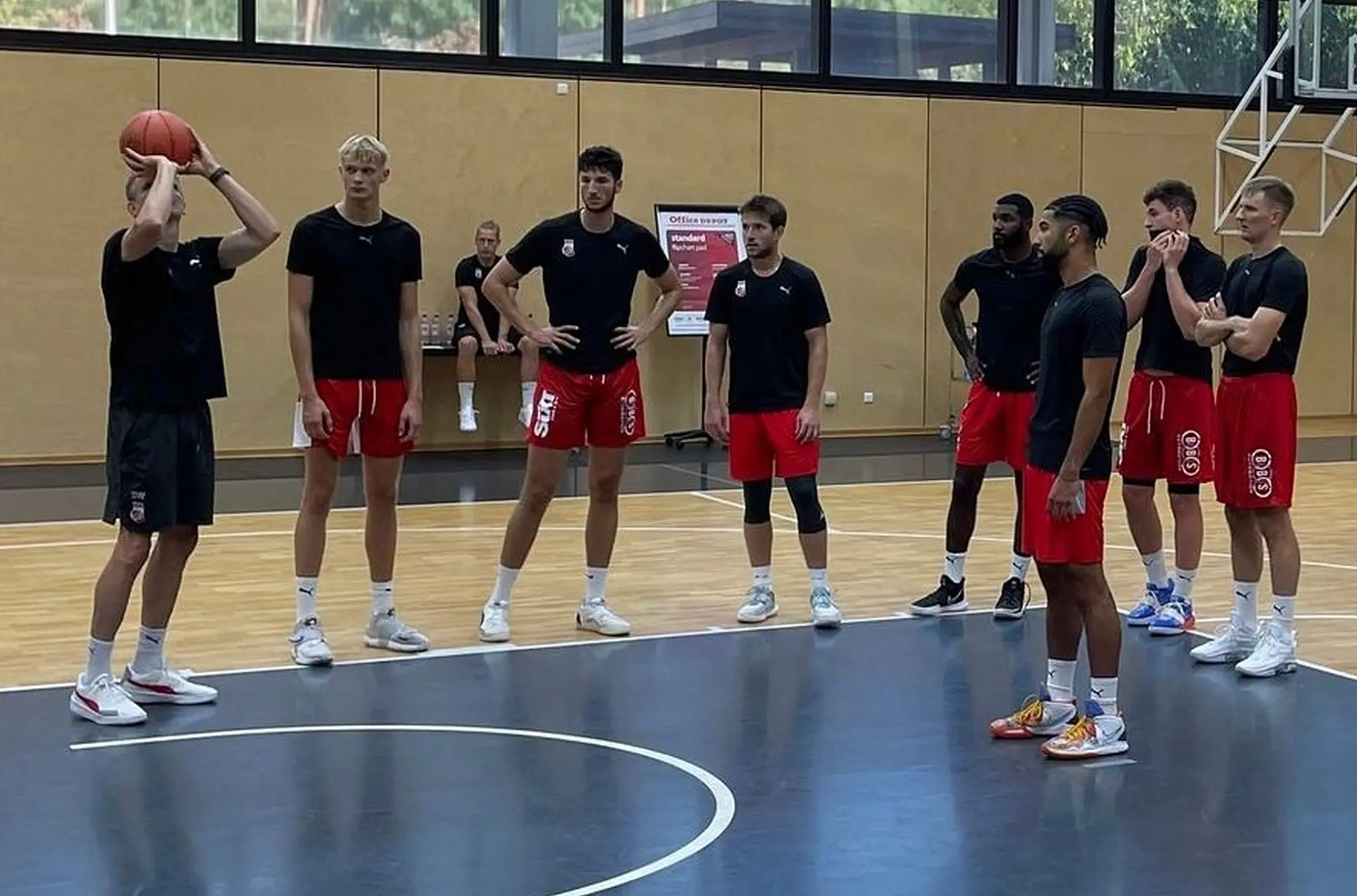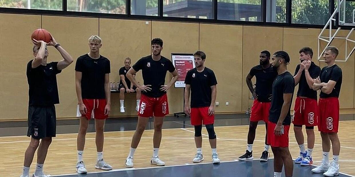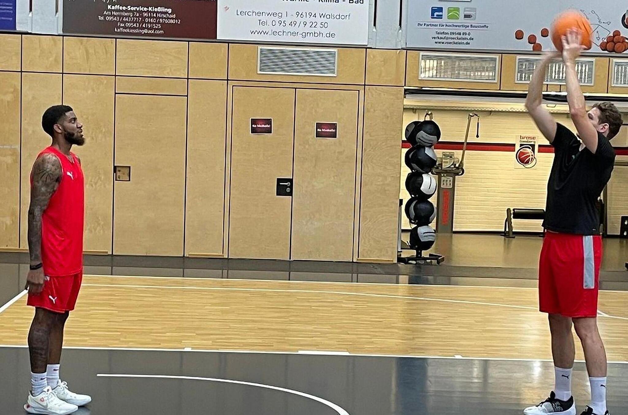 Basketball Brose Bamberg bucht Verstärkung fürs Training Individualtrainer Stefan Weissenböck (links) zeigt dem Team zum Trainingsauftakt die Feinheiten des Werfens. // Brose Bamberg von Udo Schilling TEILEN  17.08.2022 Bamberg – Mit einem Trainingsgast ist Brose Bamberg in die Vorbereitung gestartet. Der Testspielplan wurde angepasst – mit einem hochkarätigen Gegner ergänzt. Seit Dienstag fließt der Schweiß im Brose-Trainingszentrum in Strullendorf. Bambergs Cheftrainer Oren Amiel fordert die derzeit in Bamberg weilenden Bundesliga-Profis und Doppellizenzspieler zweimal täglich. Form-Shooting in Strullendorf: Der Litauer Vaidas Kariniauskas feilt an seiner Wurftechnik. // BroseBamberg Da sich mit Christian Sengfelder und dem Israeli Gabriel Chachashvili zwei große Spieler derzeit mit ihren Nationalmannschaften auf die EM vorbereiten und somit im Trainingsbetrieb fehlen, hat der Bundesligist Elvis Harvey für vier Wochen verpflichtet. Der 2,03 Meter große Power Forward spielte zuletzt beim zypriotischen Team Kaimakliou und wird die Trainingsgruppe auf zehn Spieler komplettieren, da mit dem tschechischen Flügelspieler Jaromir Bohacik ein weiterer Neuzugang wegen der EM-Vorbereitung fehlt. Wann die drei Nationalspieler zum Team stoßen, hängt vom Abschneiden der Mannschaften ab. Eventuell könnte Amiel sein Team schon nach dem Wochenende 10./11. September komplett haben. Es könnte jedoch auch eine Woche später sein. Patrick Heckmann (rechts) und Justin Wright-Foreman beim Wurftraining // Brose Bamberg Dann müssten die Spieler direkt nach Lissabon fliegen, denn dort werden sich die Bamberger schon ab 18. September auf die fünf Tage später stattfindende Qualifikation zur Champions League vorbereiten. Das geplante Trainingslager in Slowenien wurde dafür gestrichen. Hochkarätiger Testspielgegner aus der Euroleague Nach dem ersten Testspiel am 25. August in Coburg gegen den Kooperationspartner aus der 3. Liga, der Partie in Strullendorf gegen Würzburg (30. August) sowie dem Expert-Cup in Bayreuth (3./4. September) hat Amiel mit der Partie gegen Euroleague-Teilnehmer AS Monaco am 11. September in Strullendorf einen weiteren Härtetest ins Programm aufgenommen. Dafür entfällt die geplante Begegnung gegen Chemnitz. us
