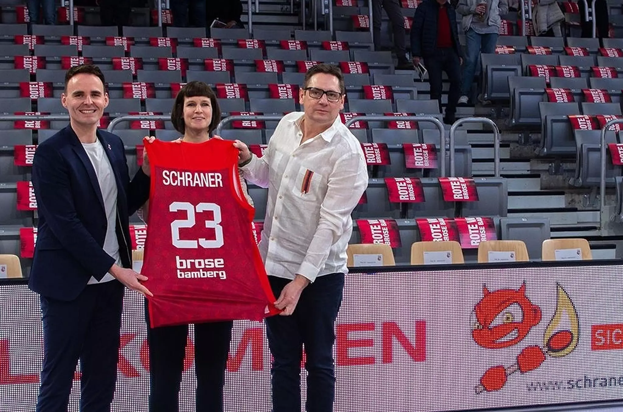 Neuer Gesellschafter Zukunft der Bamberger Basketballer ist gesichert Stefan (r.) und Verena Schraner, hier mit Brose-Vertriebschef Oliver Hahn, sind seit März Teil des Sponsorenpools von Brose Bamberg. // Brose Bamberg von Redaktion TEILEN  22.05.2023 Bamberg – Die Schraner-Group aus Erlangen übernimmt bei den Bamberger Bundesliga-Basketballern alle Gesellschafteranteile von der Brose-Unternehmensgruppe. Nach langer Suche hat die Bamberger Basketball GmbH einen neuen Gesellschafter als Nachfolger für die Brose-Unternehmensgruppe gefunden. Die Schraner-Group, Experten für Brandmeldetechnik und Unternehmensentwicklung mit Hauptsitz in Erlangen, ist neuer Alleingesellschafter bei den Bamberger Bundesliga-Basketballern. Damit ist der Fortbestand „langfristig gesichert“, teilte der neunfache deutsche Meister am Montag mit. „Ich bin sehr erleichtert, dass nun endlich eine Lösung gefunden wurde und wir in die Zukunft blicken können“, sagt Philipp Höhne, Geschäftsführer der Bamberger Basketball GmbH. „Mit der Schraner-Group hat sich noch während der vergangenen Saison eine vertrauensvolle Zusammenarbeit entwickelt, die von gegenseitiger Wertschätzung geprägt ist. Gemeinsam haben wir nun einige Herausforderungen zu meistern und es gilt, das wirtschaftlich gute Niveau mindestens zu halten und das sportliche zu erhöhen.“ Lesen Sie auch den Kommentar zum Thema: Basketball-Kommentar Der Patient Brose Bamberg ist wieder quietschfidel Der neue Alleingesellschafter sorgt für Planungssicherheit. Ob nun bei Brose Bamberg aber auf einen Schlag alles besser wird, bezweifelt unser Redakteur Peter Seidel. Brose bleibt auf dem Trikot Zugleich bedankte er sich „sehr herzlich bei Michael Stoschek und der Firma Brose für die außerordentliche Unterstützung in der letzten Dekade, die den deutschen Basketball national und international geprägt hat. Mit der Bereitschaft, auch zukünftig als Hauptsponsor den Bamberger Basketball zu unterstützen, wird das beispiellose Engagement fortgeführt und wir sind sehr glücklich, Brose weiterhin an unserer Seite und auf unserem Trikot zu haben.“ Bei einer Pressekonferenz mit Oberbürgermeister Andreas Starke (l.), Brose-Präsident Norbert Sieben (2.v.l.) und Geschäftsführer Philipp Höhne (r.) bot Michael Stoschek die Bamberger Basketball-GmbH zu einem symbolischen Kaufpreis von einem Euro an. // Brose Bamberg Brose engagiert sich seit über 15 Jahren für den Bamberger Basketball. In die Ära der Coburger Unternehmensgruppe als Alleingesellschafter fallen vier Meisterschaften und zwei Pokalsiege. Der Automobilzulieferer und dessen Gesellschafter haben in dieser Zeit erhebliche Mittel investiert. „Ich bin sehr froh, dass sich mit der Schraner-Group ein Unternehmen gefunden hat, das den Bamberger Basketball in seinen Strukturen erhalten möchte“, sagte Michael Stoschek, Vorsitzender der Brose-Gesellschafterversammlung. „Die intensiven Verhandlungen mit Verena Schraner und Stefan Schraner waren zu jeder Zeit von gegenseitigem Respekt geprägt. Daher sind wir auch gerne bereit als Hauptsponsor für mindestens die nächsten zwei Jahre zur Verfügung zu stehen. Ich wünsche den Verantwortlichen gutes Gelingen und sportlichen und unternehmerischen Erfolg.“ Kurzfristiges Angebot Die Schraner-Group ist erst seit März dieses Jahres ein Teil des Sponsorenpools des Bundesligisten. Die Firmenverantwortlichen haben sich laut Mitteilung von Brose Bamberg nun kurzfristig dazu entschieden, ein Angebot abzugeben, um das Fortbestehen der Gesellschaft zu sichern. „Wir freuen uns, dass wir innerhalb kürzester Zeit ein pragmatisches Ergebnis erzielt haben“, erklärte Firmenchef Stefan Schraner. Die Unternehmensgruppe stehe hinter dem Team der Bamberger Basketballer. „Wir wissen: Da sind wir in bester Gesellschaft.“ Denn Basketball genieße bei den Menschen in der Region und in Deutschland einen hohen Stellenwert. „Dank des Hauptsponsors Brose kann das Bamberger Basketballteam auf eine Ära von vielen Erfolgen zurückblicken, und wir freuen uns, dass Brose in dieser Rolle an Bord bleibt“, sagt Schraner. Schraner sorgt für Planungssicherheit Die Unternehmerfamilie aus Erlangen möchte nun den Verantwortlichen ermöglichen, wieder im ruhigen Fahrwasser wirtschaftlich nachhaltig zu arbeiten. „Mit dieser Planungssicherheit können sie jetzt loslegen und die notwendigen Weichen für die kommende Saison stellen“, sagt Schraner. Seine Unternehmensgruppe engagiere sich auch deshalb für den Bamberger Basketball, um im Rahmen der „Mission Sicherheit“ auf das Engagement und den Einsatz der überwiegend Freiwilligen Feuerwehren sowie die Arbeit zahlreicher Menschen in dieser Branche hinzuweisen. „Speziell die Nutzung der zukünftigen neuen Medienpartner Dyn und Bild gibt uns da viele Möglichkeiten.“ Über alle vertraglichen Details wurde Stillschweigen vereinbart. Bei einer Pressekonferenz Anfang Januar hatte Stoschek die Bereitschaft erklärt, die Gesellschafteranteile für einen symbolischen Preis von einem Euro zu veräußern. Die Liga schreibt ihren Vereinen aber ein Mindest-Eigenkapital von 250.000 Euro vor, sonst wird die Bundesliga-Lizenz entzogen. Dieses Szenario ist in Bamberg jetzt vom Tisch. Lesen Sie auch: Basketball Brose Bamberg: Tops und Flops der Saison Brose Bamberg hat eine Saison mit mehr Tiefen als Höhen hinter sich. Was war top, was ein Flop? Dazu gibt es hier jeweils drei Antworten.