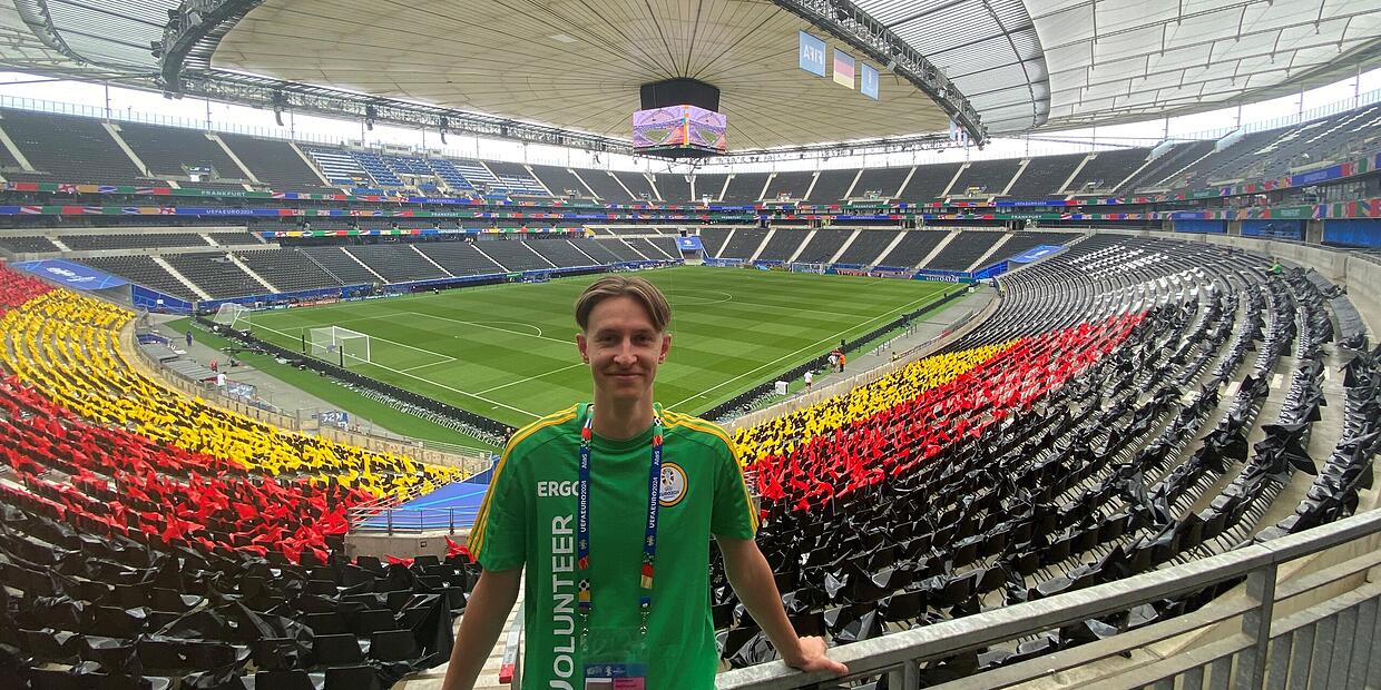 – Für David Zimmermann geht ein Traum in Erfüllung: Als Ehrenamtlicher arbeitete er bei den EM-Spielen im Frankfurter Stadion. Was er dort erlebt und welche exklusiven Einblicke er dadurch bekommt.