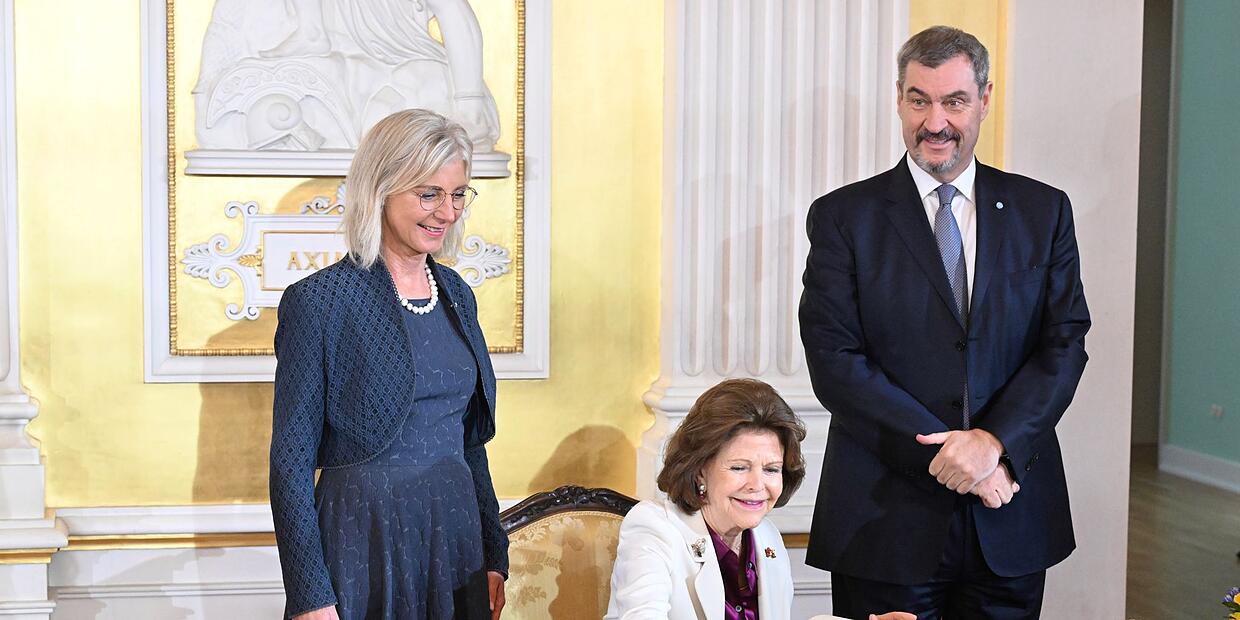 Die Staatsmedaille erhielt die Königin nach einem landestypischen Empfang mit Gebirgsschützen und Trachtenverbänden sowie dem Eintrag in das Gästebuch der Staatsregierung in einem festlichen Rahmen im Thronsaal der Residenz - und einem anschließenden Mittagessen, bei dem Ministerpräsident Markus Söder (CSU) in seiner Rede vor allem davon sprach, wie toll er Bayern findet.