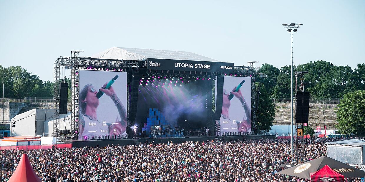 Musik Rock im Park zu Ende: Mit Traum-Wetter und entspannten Fans Besucher und Besucherinnen sehen sich den Auftritt der Band Machine Gun Kelly an der Utopia Stage an. // Daniel Vogl/dpa von dpa TEILEN  04.06.2023 Nürnberg – Zehntausende feiern bei Rock im Park in Nürnberg - ausgelassen und weniger wild als in früheren Jahren. Die größte Herausforderung für die Veranstalter steht jedoch noch bevor. 70 Bands an drei Tagen, Tanzen bis spät in die Nacht, extravagante Kostüme und viel, viel Sonne - bei bestem Festival-Wetter haben rund 70.000 Musikfans bei Rock im Park in Nürnberg ausdauernd gefeiert. Dabei waren sie nach Angaben der Polizei deutlich vernünftiger und friedlicher als in früheren Jahren. Die Rettungskräfte mussten vor allem Feierende wegen Schürfwunden und kleinerer Verletzungen behandeln. Und auch der Alkohol-Pegel hielt sich den Angaben nach bei den meisten in Grenzen. Am letzten Festivaltag, am Sonntag, strömten die Besucherinnen und Besucher bereits ab der Mittagszeit vor die Bühnen, um sich bei den Rockbands Hot Milk und Fever 333 warm zu tanzen. Am Abend sollte unter anderem die US-Rockband Foo Fighters sowie die deutschen Rapper Apache 207 und Finch auftreten. In der Eifel stieg seit Freitag zeitgleich das Zwillingsfestival Rock am Ring, bei dem zeitversetzt dieselben Bands spielten. Während die ersten Besucherinnen und Besucher in Nürnberg am Sonntag schon kräftig feierten, stärkten sich Fine und Sophie aus Jena am frühen Nachmittag erstmal mit Pizza und Falafel im Schatten. «Wir sind schon seit Donnerstag da, deshalb sind wir schon ganz schön platt», sagte die 22-jährige Sophie. «Aber heute müssen wir noch einmal voller Energie sein», meinte ihre Freundin. Von Tag zu Tag seien mehr Musikfans zu dem Festival gekommen, sagte Veranstalter-Sprecherin Carolin Hilzinger. Am Ende waren es dann mehr als der Veranstalter zunächst erwartet hatte. Möglicherweise war das Wetter ein Grund dafür, dass sich so viele noch spontan entschieden. «Wir haben dieses Jahr Traum-Wetter für ein Festival», sagte Sohrab Taheri-Sohi vom Bayerischen Roten Kreuz (BRK), das die Rettungseinsätze auf dem Gelände leitete. Das ganze Wochenende blieb es trocken, sonnig und warm - manchmal im Gedränge schon fast zu warm. Zwischen den Auftritten bildeten sich lange Schlangen an den Wasserstellen, wo die Verschwitzten ihre Trinkbeutel auffüllten. Manchen hielten gleich den ganzen Kopf drunter. Die Rettungskräfte mussten immer wieder Leute behandeln, die wegen zu viel Sonne unter anderem über Kopfschmerzen und Übelkeit klagten. Die wichtigsten Accessoires waren an dem Wochenende - zum Teil recht ausgefallene - Sonnenhüte und durchsichtige Umhängetaschen, aus denen die Feiernden regelmäßig Sonnencreme holten, um sich mit einer dicken Schicht einzuschmieren. Trotz Hitze trugen manche auch kuschelige Tier-Kostüme, Dirndl oder kamen als Jesus-Darsteller in langem Gewand. Auch auf der Bühne zeigten sich manche Musikerinnen und Musiker in fantasievollen Outfits. So trug das deutsche Indie-Pop-Trio Blond blumenartige Tüllumhänge, der US-Rapper Machine Gun Kelly fiel mit einer seltsamen Mütze-Schal-Kombi auf. Fast 1600 Notfälle zählte das BRK bis Sonntagmorgen - und damit weniger als im Vorjahr. Einem Mann retteten die Einsatzkräfte allerdings das Leben - dieser sei leblos umgefallen, Rettungskräfte seien schnell zur Stelle gewesen und konnten ihn reanimieren. «Wir hoffen, dass es insgesamt so ruhig bleibt», sagte Taheri-Sohi. Am Sonntag seien noch mal deutlich mehr Leute auf dem Gelände unterwegs, vor allem eher junge, die wegen der Rapper Finch und Apache 207 gekommen seien. Mit dem Festival-Ende in der Nacht zum Montag stehen die Veranstalter allerdings vor der größten Herausforderung: Denn nach Rock im Park ist vor dem Evangelischen Kirchentag, der am Mittwoch in Nürnberg beginnt. Große Teil des Geländes müssten deshalb bis Dienstag geräumt sein, sagte Hilzinger. Sobald auf den Bühnen die letzten Lieder verklingen, sollten deshalb unter Hochdruck die Abbau- und Aufräumarbeiten beginnen. Rock im Park