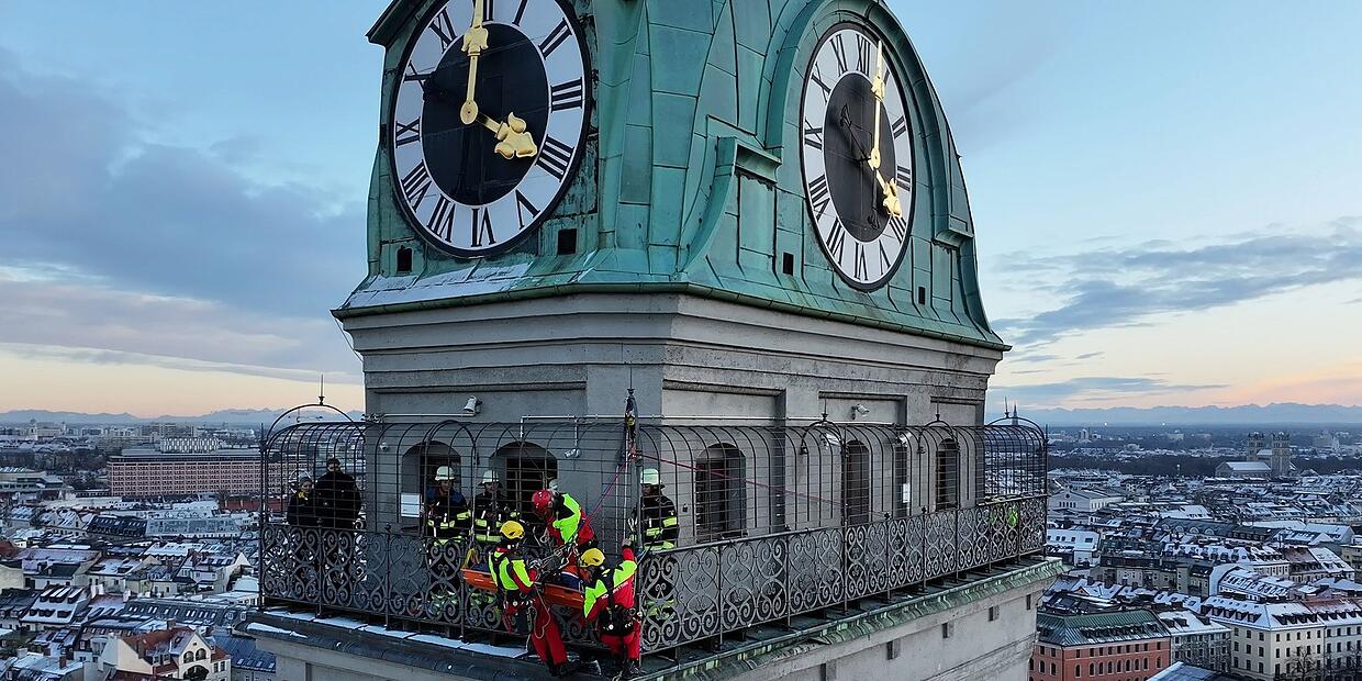 Eine 35-Jährige ist von Höhenrettern der Feuerwehr in München vom Alten Peter abgeseilt worden. Nach Angaben der Einsatzkräfte war die Frau beim Abstieg von der Aussichtsplattform gestürzt und hatte sich dabei schwere Verletzungen zugezogen.