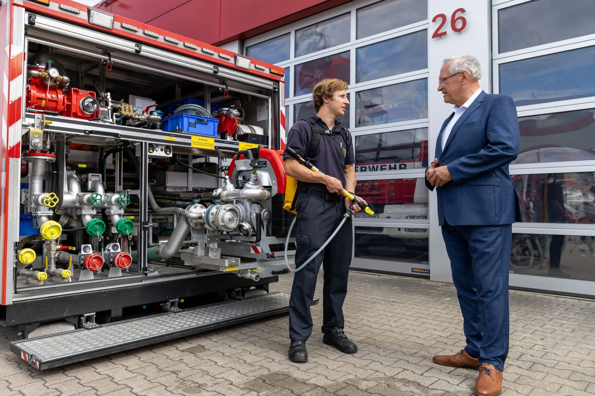 Innenminister Herrmann fordert vom Bund mehr Geld für Katastrophenschutz Ein Feuerwehrmann (l) präsentiert dem bayerischen Innenminister Joachim Herrmann Gerätschaften. // Daniel Karmann/dpa von dpa TEILEN  24.08.2022 Nürnberg – Bayerns Innenminister Joachim Herrmann (CSU) hat unter anderem angesichts weiter großer Waldbrandgefahr den Bund aufgefordert, bei den Anstrengungen im Katastrophenschutz nicht nachzulassen. Obwohl alle 16 Länder-Innenminister mehr Geld vom Bund für den Katastrophenschutz gefordert hätten, habe Finanzminister Christian Lindner (FDP) in seinem Haushaltsentwurf die Ausgaben etwa für das Bundesamt für den Katastrophenschutz oder das Technische Hilfswerk (THW) gekürzt, sagte Herrmann am Mittwoch in Nürnberg. «Wir müssen noch mehr für den Katastrophenschutz tun, da ist auch der Bund mit dafür zuständig», sagte Herrmann. «Ich kann überhaupt nicht verstehen, dass im Entwurf des Bundeshaushaltes für 2023 die Mittel für den Katastrophenschutz gekürzt werden», sagte Herrmann. «Alle Welt erwartet eigentlich eine deutliche Verstärkung der Mittel», erklärte er mit Blick etwa auf zurückliegende Geschehnisse wie das Hochwasser im Ahrtal oder die Waldbrände um Berlin oder in Sachsen. Herrmann ließ sich bei der Berufsfeuerwehr Nürnberg die neuesten Möglichkeiten zur Waldbrandbekämpfung vorführen - unter anderem Löschflüge mit Hubschraubern der bayerischen Polizei. Der Einsatz von Hubschraubern sei dem von Löschflugzeugen vorzuziehen. Flugzeuge könnten sinnvoll nur an Meeresküsten eingesetzt werden. Bayern werde weitere, leistungsfähigere Hubschrauber anschaffen, genauso wie Pumpensysteme. Diese könnten nicht nur Löschwasser zum Einsatzort transportieren, sondern auch im Kampf gegen Hochwasser eingesetzt werden.