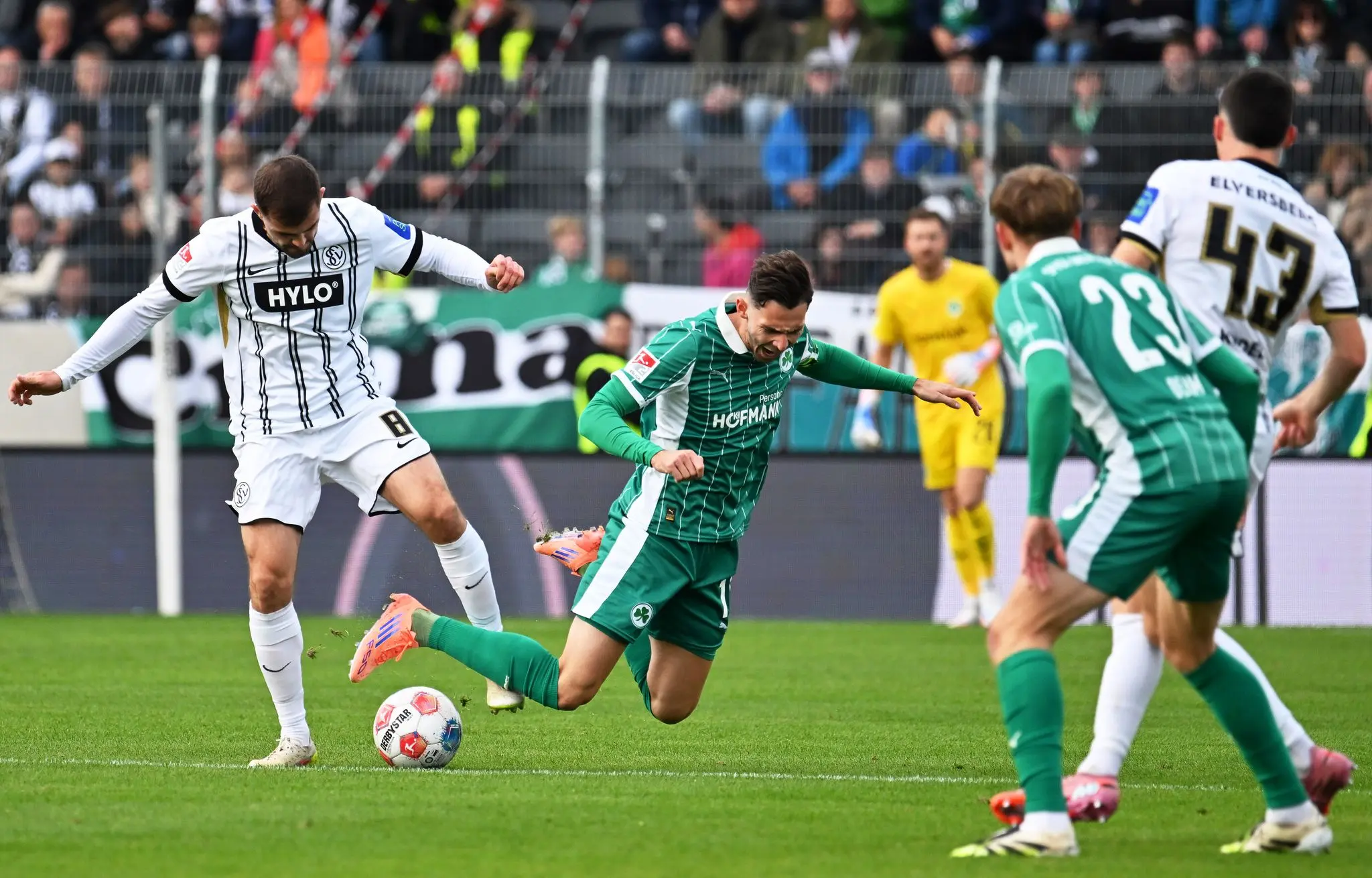 2. Fußball-Bundesliga Höchste Saisonpleite: Fürth geht in Elversberg unter Das Fürther Team um Branimir Hrgota (M) war in Elversberg chancenlos. // Harald Tittel/dpa Trainer Thomas Kleine konnte nicht zufrieden sein. // Harald Tittel/dpa Regelkonform war Younes Ebnoutalib (am Boden) von den Fürthern kam zu stoppen. // Harald Tittel/dpa von dpa TEILEN  vor 13 Stunden Elversberg – Statt einer Überraschung gibt es für SpVgg Greuther Fürth in Elversberg eine schmerzhafte Lektion. Ein Torjäger des saarländischen Dorfclubs baut seine Mehrfachpack-Bilanz aus. Artikel anhören Sie können uns nicht hören? Diese Funktion können Sie exklusiv mit PLUS nutzen. Erhalten Sie uneingeschränkten Zugriff auf alle Audioinhalte, Artikel und vieles mehr. Vorlesefunktion freischalten Bereits -Zugriff? Jetzt Anmelden Die SpVgg Greuther Fürth hat in der 2. Fußball-Bundesliga ein Auswärts-Debakel erlebt. Die chancenlosen Franken unterlagen bei Spitzenreiter SV Elversberg um Dreifachtorschützen Younes Ebnoutalib klar mit 0:6 (0:1). Es war die höchste Saisonniederlage für die Spielvereinigung. Nur einmal hatten die Franken in der 2. Liga überhaupt so hoch verloren, im Februar 2019 gegen den SC Paderborn. «Die Mentalität, jedes Tor zu verteidigen, hatten wir heute ganz klar nicht», sagte Trainer Thomas Kleine bei Sky. «Es tut weh. Es geht darum, das Spiel schnell aus den Köpfen zu kriegen, aber es auch knallhart zu analysieren.» Dreimal doppelt, einmal dreifach Neben Ebnoutalib (48./56./81. Minute) trafen Bambasé Conté (27.), Jason Ceka (85.) und Florian Le Joncour (90.+3) vor 8.483 Zuschauern im Stadion an der Kaiserlinde für das Team von Trainer Vincent Wagner. Nach drei Doppelpacks in dieser Saison war Angreifer Ebnoutalib erstmals dreifach erfolgreich. Insgesamt steht der 22-Jährige bei neun Saisontoren. Nach dem vierten Dreier in Serie führt Elversberg die Tabelle mit einem Punkt vor dem FC Schalke 04 an. Der Dorfclub ist nun seit sieben Spielen ohne Niederlage. Fürth muss sich dagegen nach unten orientieren. Die Mannschaft von Trainer Kleine belegt den 14. Tabellenrang. Der Vorsprung auf den Abstiegsrelegationsplatz beträgt vor dem Heimspiel gegen den Karlsruher SC drei Punkte. «Da müssen wir defensiv ein ganz anderes Gesicht zeigen», sagte Kleine. Top organisierte Elversberger Die Hoffenheimer Leihgabe Conté leitete den Führungstreffer bei einem Konter selbst ein und nutzte die Hereingabe von Lasse Günther. Der 22-Jährige musste allerdings zur Pause angeschlagen raus. Die ersatzgeschwächten Fürther taten sich schwer gegen die neu formierte, aber bereits top organisierte und spielstarke SVE. Direkt nach Wiederanpfiff erhielten die Franken den nächsten Rückschlag: Ebnoutalib machte per Direktabnahme das 2:0. Kurz darauf rettete SVE-Keeper Nicolas Kristof mit dem Fuß gegen Felix Klaus, ehe erneut Ebnoutalib die fünfte Niederlage für das Gäste-Team vorzeitig klarmachte. Gegen schwindende Fürther Gegenwehr schraubten die Gastgeber den Erfolg dann weiter in die Höhe.