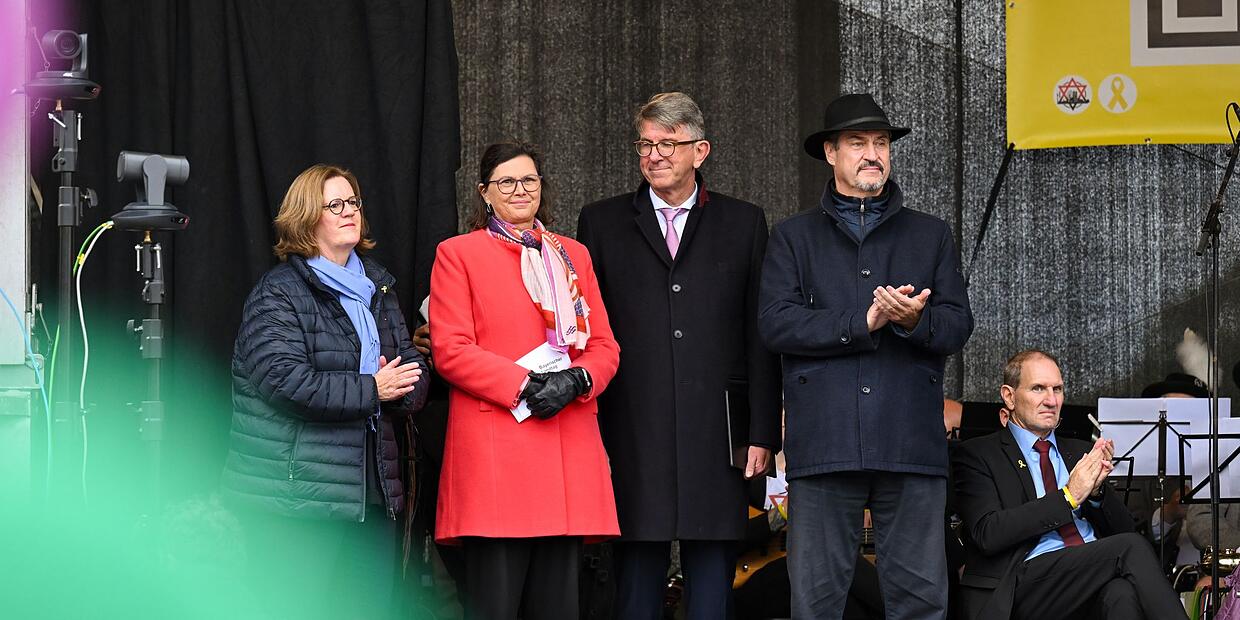 Demonstration Hunderte setzen in München Zeichen gegen Antisemitismus Menschen stehen bei der Kundgebung «Dach gegen Hass» gegen Antisemitismus am Königsplatz in München. // Tobias Hase/dpa Mehrere prominente Gäste zeigten bei der Kundgebung ihre Unterstützung: Staatssekretärin Kerstin Griese (v.l.), Landtagspräsidentin Ilse Aigner, Kulturstaatsminister Wolfram Weimer und Ministerpräsident Markus Söder. // Tobias Hase/dpa Ministerpräsident Söder war Schirmherr der Veranstaltung. // Tobias Hase/dpa von dpa TEILEN  vor 3 Stunden München – Ministerpräsident Söder, Charlotte Knobloch und viele weitere stellen sich offen gegen Antisemitismus. In München versammeln sich mehr als tausend Menschen, um ein Zeichen zu setzen. Artikel anhören Sie können uns nicht hören? Diese Funktion können Sie exklusiv mit PLUS nutzen. Erhalten Sie uneingeschränkten Zugriff auf alle Audioinhalte, Artikel und vieles mehr. Vorlesefunktion freischalten Bereits -Zugriff? Jetzt Anmelden Mehr als tausend Menschen folgten nach Polizeiangaben dem Aufruf des Bündnisses «Dach gegen Hass» in München, um gemeinsam ein Zeichen gegen Antisemitismus zu setzen. Die Kundgebung stand unter der Schirmherrschaft von Ministerpräsident Markus Söder (CSU) und der Präsidentin der Israelitischen Kultusgemeinde München und Oberbayern, Charlotte Knobloch. Die Veranstalter forderten unter anderem nach der Freilassung aller Geiseln und nach einer klaren Haltung gegen den Antisemitismus in Europa. Viele der Demonstranten schwenkten bei der Veranstaltung am Königsplatz israelische Flaggen, einige hatten Schilder dabei. Die Polizei zählte etwa 1.500 Menschen. Zu den Teilnehmerinnen und Teilnehmern sprachen unter anderem mehrere prominente Gesichter aus der Politik sowie Vertreter der Kirche. Landtagspräsidentin: «Man kann nicht mehr gutheißen, was in Gaza geschieht» «Wir dürfen nicht zulassen, dass sich die Schlinge der Intoleranz weiter zuzieht», betonte der Staatsminister für Kultur und Medien, Wolfram Weimer (parteilos), vor der Kundgebung. «Es genügt nicht, Antisemitismus zu bedauern, die Vorfälle zu betrauern. Wir müssen handeln.» Ministerpräsident Markus Söder schrieb anlässlich der Kundgebung in einem Beitrag auf Social Media: «Antisemitismus darf niemals mehr unsere Straßen und unser Leben bestimmen.» Der Satz «Nie wieder» gelte heute mehr denn je. «Wir werden alle Angriffe auf unsere Freiheit, Demokratie und das friedliche Miteinander entschlossen abwehren.» Die bayerische Landtagspräsidentin Ilse Aigner (CSU) drückte in ihrer Rede ihre Unterstützung gegen den Antisemitismus aus. «Jüdische Menschen werden angegriffen, verletzt und getötet – wie jetzt in Manchester, an Jom Kippur. Aus einem einzigen Grund: aus Judenhass!». Aigner äußerte sich aber auch kritisch gegenüber Israel: «Ja, manche Entscheidung und Äußerung aus der israelischen Regierung sind mir total fremd. Und bei aller Solidarität: Man kann nicht mehr gutheißen, was in Gaza geschieht. Es ist schrecklich!». Aber jüdische Menschen kollektiv zu bedrohen sei kein Kampf für die palästinensische Sache, das sei Judenhass. Landesbischof zeigt seine Unterstützung Der Landesbischof der Evangelisch-Lutherischen Kirche in Bayern, Christian Kopp, sah in Angriffen gegen Juden einen Angriff gegen alle. «Als Christ sage ich klar: Antisemitismus ist mit meinem Glauben unvereinbar. Wir stehen an der Seite unserer jüdischen Geschwister – heute und immer.»