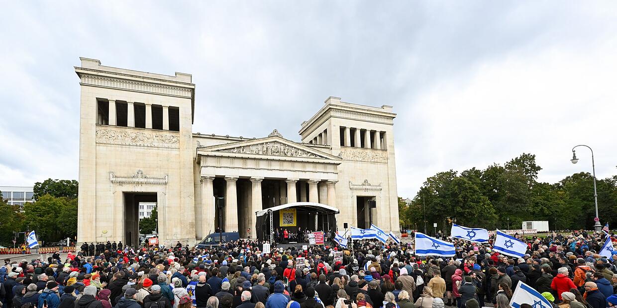 Die Veranstalter forderten unter anderem nach der Freilassung aller Geiseln und nach einer klaren Haltung gegen den Antisemitismus in Europa. Viele der Demonstranten schwenkten bei der Veranstaltung am Königsplatz israelische Flaggen, einige hatten Schilder dabei. Die Polizei zählte etwa 1.500 Menschen.