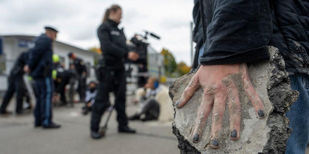 Polizeieinsatz Klebeprotest an Zufahrt zu Rüstungsfirma Renk Speziell geschulte Polizisten versuchten, die Hände von Demonstranten von der Straße zu lösen. // Stefan Puchner/dpa Nicht in allen Fällen klappte das Lösen der Hände vom Boden sofort ohne Rückstände. // Stefan Puchner/dpa Der Polizeieinsatz nach der Blockade dauerte bis in den Nachmittag hinein. // Stefan Puchner/dpa von dpa TEILEN  13.10.2025 Augsburg – Polizisten rücken am Vormittag zum Werk der Panzergetriebe-Firma Renk aus. Mehrere Demonstranten blockieren dort eine Zufahrt. Wie sie ihren Protest begründen. Artikel anhören Sie können uns nicht hören? Diese Funktion können Sie exklusiv mit PLUS nutzen. Erhalten Sie uneingeschränkten Zugriff auf alle Audioinhalte, Artikel und vieles mehr. Vorlesefunktion freischalten Bereits -Zugriff? Jetzt Anmelden Mehrere Demonstranten haben sich am Vormittag an einer Zufahrt zum Werk des Panzergetriebe-Herstellers Renk in Augsburg festgeklebt. Ersten Informationen zufolge hätten sich zehn Demonstrantinnen und Demonstranten am Boden festgeklebt, sagte eine Polizeisprecherin. «Da kommen jetzt speziell geschulte Kollegen zum Einsatz, um sie vom Boden zu lösen.» Die Versammlung sei bei den Behörden nicht angemeldet gewesen. Der Einsatz dauerte der Polizeisprecherin zufolge bis in die Nachmittagsstunden. «Es müssen noch Menschen gelöst werden.» Wie lang dies noch dauern könnte, blieb zunächst unklar. Die Polizei prüfte unterdessen bereits, ob ein Anfangsverdacht auf Nötigung gegen die Demonstrantinnen und Demonstranten vorliege, die sich am Boden festgeklebt hatten. Gruppe begründet Protest mit Waffenlieferungen an Israel Die Gruppe «Peacefully against Genocide» (Deutsch: Friedlich gegen Völkermord) begründete den Protest mit «fortgesetzten Rüstungskooperationen mit Israel trotz des Völkermordes in Gaza und des aktuellen Waffenstillstands». Ethisch und völkerrechtlich sei «Deutschland längst dazu verpflichtet, Waffenlieferungen an die israelische Regierung und Armee zu stoppen», zitierte die Gruppe eine Teilnehmerin in ihrer Mitteilung. Israel hat den Vorwurf des Völkermordes stets zurückgewiesen. Renks Firmenchef Alexander Sagel hatte im Sommer in der Kontroverse um einen deutschen Exportstopp für bestimmte Rüstungsgüter nach Israel gesagt, das Unternehmen erwäge, einen Lieferstopp zu umgehen. Es gebe einen «Plan B», sagte Sagel der «Financial Times». Dieser sehe vor, die Produktion von Getrieben für israelische Panzer in die USA zu verlagern. Das Unternehmen habe aus deutscher Sicht «die Verantwortung, dafür zu sorgen, dass Israel seine Abschreckungsfähigkeit aufrechterhalten kann».