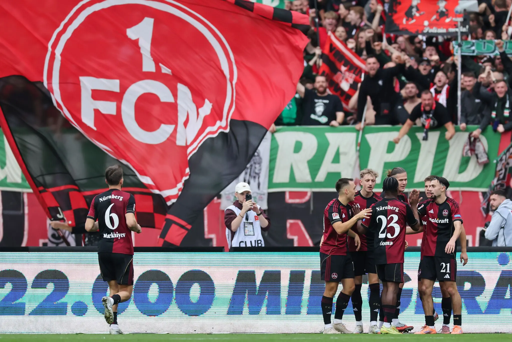 2. Fußball-Bundesliga Kloses Nürnberger nach «Kampfspiel» auf Klettertour Der «Club» jubelt gegen Braunschweig, hier nach dem Tor zum 2:0. // Daniel Löb/dpa In den Zweikämpfen ging es zur Sache, hier von Nürnbergs Adam Markhiev (l) mit gestrecktem Bein gegen Sven Köhler. // Daniel Löb/dpa Miroslav Klose musste am Spielfeldrand bis zum Ende um den knappen Sieg bangen. // Daniel Löb/dpa von dpa TEILEN  vor 21 Stunden Nürnberg – Der 1. FC Nürnberg feiert den dritten Dreier der Saison und ist nun seit vier Partien ungeschlagen. Glanzpunkte beim Arbeitssieg sind die Tore von Zoma und Becker. Artikel anhören Sie können uns nicht hören? Diese Funktion können Sie exklusiv mit PLUS nutzen. Erhalten Sie uneingeschränkten Zugriff auf alle Audioinhalte, Artikel und vieles mehr. Vorlesefunktion freischalten Bereits -Zugriff? Jetzt Anmelden Am Ende wurde gezittert - und dann erleichtert gejubelt. Ein vorn sehr effizienter 1. FC Nürnberg hat in der 2. Fußball-Bundesliga gegen Eintracht Braunschweig gewonnen und setzt zu einer Klettertour an. Das 2:1 (2:1) war das vierte Spiel in Serie ohne Niederlage für das Team von Trainer Miroslav Klose. In der Tabelle zog der «Club» mit zwölf Punkten am Gegner (10) vorbei. Mohamed Zoma (19. Minute) und Finn Becker (33.) trafen für die Gastgeber vor 33.159 Zuschauern im Max-Morlock-Stadion. Kevin Ehlers (40.) verkürzte nach einem Freistoß von Sven Köhler für die Niedersachsen, die gut im Spiel waren. In der Nachspielzeit sah Torschütze Ehlers nach einem Foul die Gelb-Rote Karte. «Es war ein Kampfspiel. Wir hatten nur zwei Chancen, haben die aber genutzt», sagte Torschütze Becker, der kritisch war: «In der zweiten Halbzeit haben wir gezittert. Wir sind sehr glücklich über den Sieg, aber zufrieden sind wir nicht.» Klose muss am Spielfeldrand zittern Es war ein Nürnberger Arbeitssieg mit spielerischen Glanzpunkten bei den beiden Toren. Das 1:0 war klasse heraus gespielt. Zoma vollendete mit einem Volleyschuss. Ausgangspunkt vor Treffer Nummer zwei war eine energische Balleroberung von Außenverteidiger Berkay Yilmaz. Über Zoma kam der Ball zu Becker, der im Strafraum erfolgreich abschloss. Braunschweig, das schon nach sechs Minuten Mehmet Aydin mit einer Oberschenkelverletzung verlor, fehlte die Durchschlagskraft. Das Tor fiel nach einer Standardsituation. Nürnbergs Tim Drexler verpasste nach einer Ecke bei einem zu hoch platzierten Kopfball das vorentscheidende 3:1 (63.). In der langen Nachspielzeit hielt die «Club»-Abwehr allen Attacken stand.