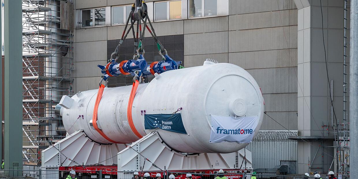 Der Rückbau des ehemaligen Atomkraftwerkes Grafenrheinfeld in Unterfranken schreitet voran. Stück für Stück werden derzeit im Zeitlupentempo die sogenannten Dampferzeuger aus dem Reaktorgebäude geholt. Vier Stück sind es insgesamt - und weil sie radioaktiv kontaminiert sein können, ist Vorsicht angesagt.