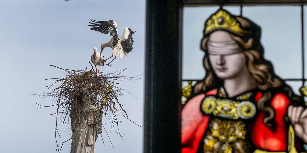 Denn die Mariensäule ist eigentlich von ihrer Oberfläche her viel zu klein für ein Storchennest. «Die aktuellen Bauversuche der Störche gelten als wenig erfolgversprechend», teilte die Stadt mit. Sie hätten jetzt schon Schaden angerichtet: «Erste kleinere Schäden, etwa an der Krone der Mariensäule, wurden bereits festgestellt.»