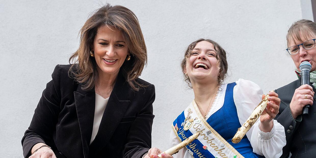 Es ist wieder Spargelzeit: Landwirtschaftsministerin Michaela Kaniber appelliert an die Menschen im Freistaat, beim Kauf auf heimische Produkte zu setzen. Spargelstechen sei «verdammt harte Arbeit» und Spargel aus der Region «jeden Cent wert», sagte die CSU-Politikerin auf dem Münchner Viktualienmarkt, wo sie zusammen mit Spargelkönigin Franziska Schweiger symbolisch den ersten Spargel stach.