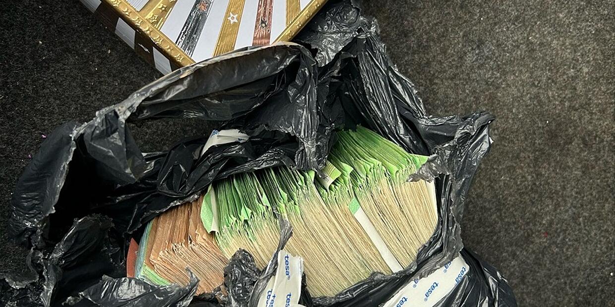 Bei der anschließenden Überprüfung entdeckten die Beamten auf einem Rücksitz einen Karton. Der Fahrer gab an, dass er den Inhalt nicht kenne und er den Karton nur für eine andere Person nach Frankfurt transportiere. Beim Öffnen fanden die Zollbeamten in einem Müllsack Bargeld in Höhe von 84.250 Euro. Das Bargeld wies Kokainspuren auf, auch ein Drogentest fiel positiv aus. Gegen den 32-Jährigen wurde ein Strafverfahren wegen des Verdachts auf Geldwäsche eingeleitet.