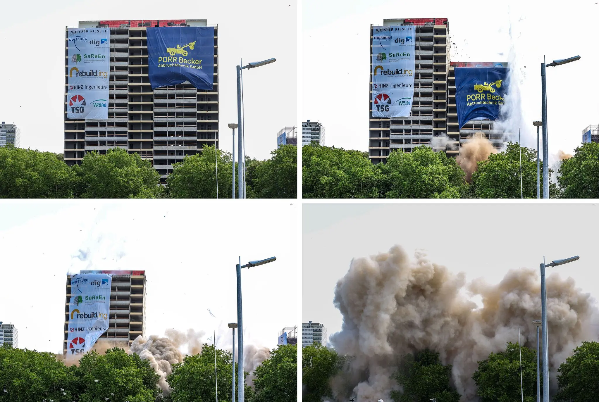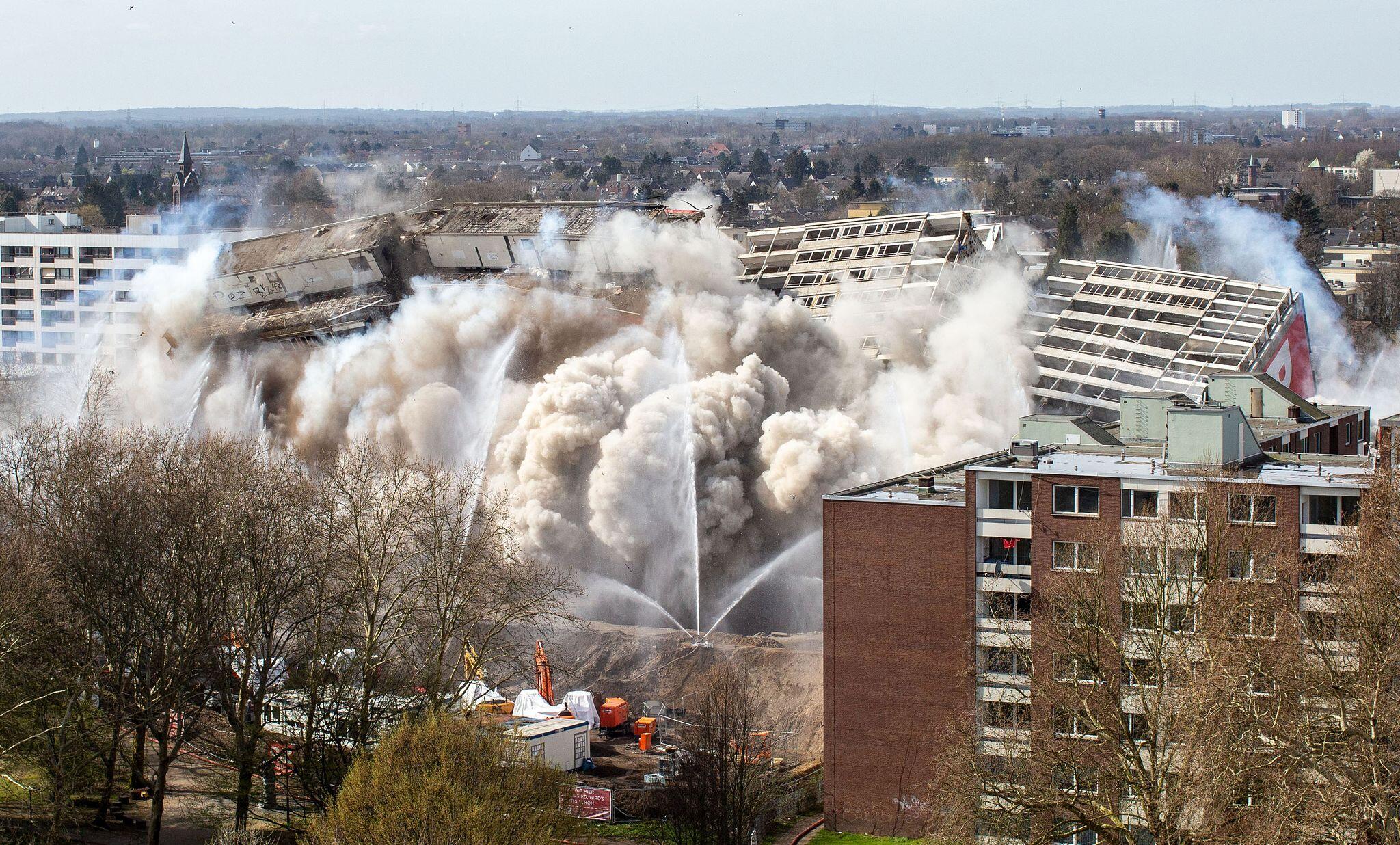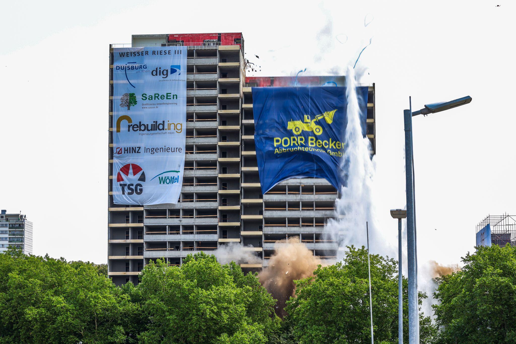 Wohnen Duisburg sprengt weiteren «Weißen Riesen» Die Sprengung verlief wie von der Stadt vorgesehen. // Christoph Reichwein/dpa Einst bot das Gebäude mit 160 Einheiten reichlich Wohnraum. // Christoph Reichwein/dpa Die Sprengung lockte nicht nur Anwohner, sondern auch andere Schaulustige. // Christoph Reichwein/dpa Gesprengt wurde wie schon 2019 nach der «Kipp-Kollaps-Faltung». Dabei wird zeitversetzt zweimal gesprengt, so dass das Gebäude erst kippt und dann kollabiert. (Archivbild) // Christoph Reichwein/dpa von dpa TEILEN  27.07.2025 Duisburg – Die «Weißen Riesen» stehen in Duisburg für Konflikte und den Abstieg eines Wohnviertels. Eines der Hochhäuser ist nun gesprengt worden. Es soll Platz entstehen für mehr Lebensqualität. Mit einer gewaltigen Detonation ist in Duisburg ein weiterer «Weißer Riese» gefallen. Das mehr als 60 Meter hohe Gebäude mit seinen einst 160 Wohnungen wurde am Sonntag planmäßig um 12.00 Uhr zum Einsturz gebracht. Eine erste Sprengung brachte das Gebäude zum Kippen, eine zweite dann zum Kollabieren. Komplikationen gab es der Stadt zufolge nicht. Es ist der dritte und letzte «Weiße Riese», der gesprengt wurde. Anschließend will die Stadt das Viertel Hochheide, das seit Jahren als sozialer Brennpunkt gilt, umgestalten. Die Hochhaus-Gegend im Westen der Stadt war in den vergangenen Jahren regelmäßig in die Schlagzeilen geraten. Bei Schwerpunktkontrollen wurde dort Sozialbetrug im großen Stil festgestellt. Logistiker wie DHL weigerten sich zeitweise, Lieferungen in den Gebäuden zuzustellen, weil es dort für die Mitarbeiter zu gefährlich sei. Allein das nordrhein-westfälische Bauministerium unterstützte den Abriss der Problem-Hochhäuser mit 32,7 Millionen Euro. Der Abriss sei ein wichtiger Schritt, um die Wohngegend aufzuwerten, sagte Bauministerin Ina Scharrenbach (CDU). «Der dritte "Weiße Riese" geht zu Boden – und macht Platz für Licht, Luft und neue Stadtgeschichte.» Vom modernen Wohnen zum Problembezirk Der Wohnpark Hochheide mit seinen sechs «Weißen Riesen» wurde Anfang der 70er Jahre gebaut. Die modernen Wohnungen in den gut 20-stöckigen Hochhäusern waren damals in der Duisburger Arbeiterschaft begehrt. Doch schon in den 80ern begann der Abstieg des Viertels. Inzwischen sind nur noch drei der «Weißen Riesen» bewohnt.