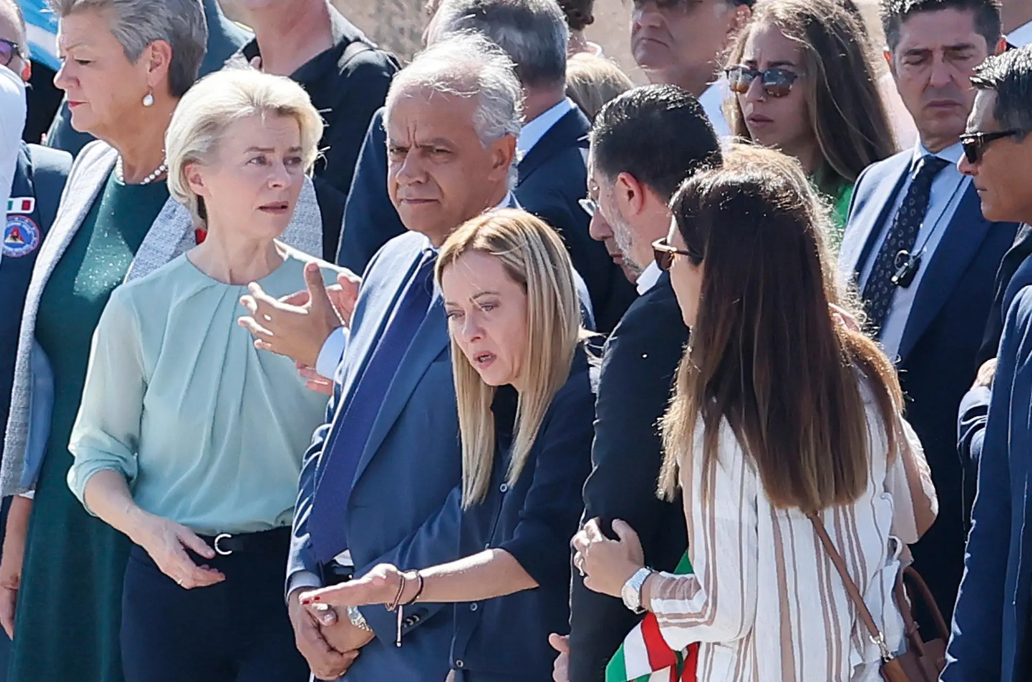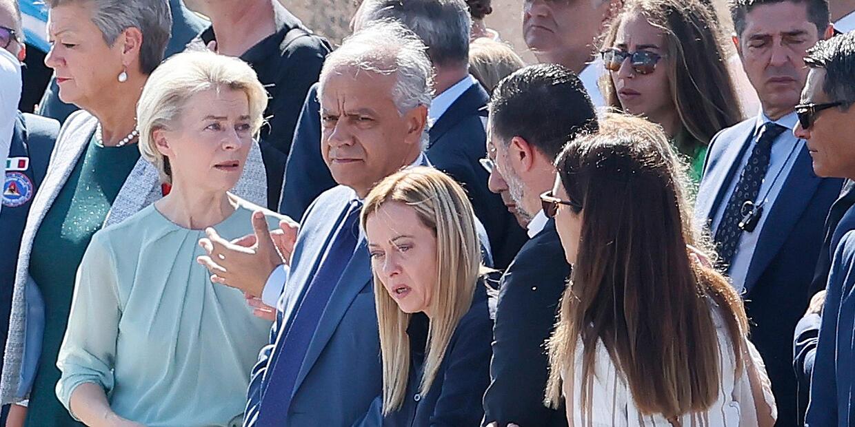 Diplomatie Von der Leyen will Italien helfen Ursula von der Leyen (2. von links) besuchte mit Giorgia Meloni (4. von links) Lampedusa. // Cecilia Fabiano/LaPresse, dpa von Julius Müller-Meiningen TEILEN  17.09.2023 Rom – Tausende Migranten haben in wenigen Tagen die Insel Lampedusa erreicht. Die EU-Kommissionspräsidentin macht sich mit Italiens Regierungschefin ein Bild von der Lage. Die Bilder sollten Einigkeit demonstrieren: Italien und die Europäische Union stehen Seite an Seite beim Bemühen darum, die Migration über das Mittelmeer nach Europa in den Griff zu kriegen. Man hätte den Besuch von EU-Kommissionspräsidentin Ursula von der Leyen und Italiens Ministerpräsidentin Giorgia Meloni am Sonntag auf der Insel Lampedusa auch als Schulterschluss zwischen Italien und der EU bezeichnen können. Doch das eine sind Bilder, das andere ist die Realität. Auffanglager völlig überfüllt Von der Leyen und Meloni besuchten das „Hotspot“ genannte Auffanglager auf der Insel, die nur 150 Kilometer von der tunesischen Grenze entfernt liegt. Allein in der vergangenen Woche waren über 8000 Migranten vor allem aus der tunesischen Hafenstadt Sfax zumeist auf kleinen Booten auf der zu Italien gehörenden Mittelmeer-Insel angekommen. Das für 400 Ankömmlinge ausgelegte Lager war zeitweise mit über 7000 Menschen völlig überfüllt. In den vergangenen Tagen waren die Migranten per Schiff nach Sizilien gebracht worden. Am Sonntag befanden sich noch rund 1500 Menschen in dem Hotspot. Auf einer Pressekonferenz kündigte Meloni ein hartes Vorgehen gegen Migranten und Menschenhändler an. „Das Minimum ist eine europäische Marine-Mission gegen die Schlepper“, sagte Meloni, ohne genauere Details für diesen Vorschlag zu nennen. Sie könne sich eine Beteiligung der Vereinten Nationen vorstellen. In der Vergangenheit hatte Meloni immer wieder eine Blockade der Flüchtlingsboote gefordert. „Weniger als die Umverteilung der Migranten ist ein Stopp der Abfahrten notwendig“, forderte Meloni, die eine Rechtskoalition in Italien führt. Milliarden-Abkommen mit Tunesien funktioniert nicht Im Juli hatten die EU und Italien ein Abkommen mit Tunesien unterzeichnet, in dessen Folge Tunesien die Abfahrten über das Meer unterbinden soll und im Gegenzug Milliarden-Hilfen bekommt. Das Abkommen funktioniert aber offensichtlich nicht. „Das ist ein Problem, das alle angeht“, sagte Meloni über die Ankünfte auf Lampedusa. Sie sehe den Besuch von der Leyens weniger als Solidaritäts-Geste gegenüber Italien, sondern als „Akt der Verantwortung von Europa gegenüber sich selbst“. Die italienischen Grenzen seien auch europäische Grenzen. Die Ministerpräsidentin versprach „ernsthafte, komplexe und langfristige Lösungen“, ohne diese im Detail zu erläutern. „Wir brauchen ganz gewiss eine europäische Lösung“, sagte EU-Kommissionspräsidentin von der Leyen. Wir müssen ein Kriterium für den Zugang in die EU festlegen“, fügte sie hinzu. EU und die Grenzschutzbehörde Frontex könnten dabei helfen, die große Zahl von Migranten auf der Insel zu bewältigen, indem diese auf andere Staaten der EU verteilt würden. Notwendig sei auch eine schnelle Rückführung derjenigen, „wenn sie keine Chance auf Asylrecht haben“. Von der Leyen appellierte an die Solidarität der EU-Länder: „Wir bitten andere Mitgliedsstaaten dringend, Solidarität zu beweisen.“ Von der Leyen will Zehn-Punkte-Aktionsplan Nach einem freiwilligen Solidaritätsmechanismus hatten sich unter anderem Deutschland und Frankreich zur Übernahme von Migranten verpflichtet. Vor Tagen kündigten beide Länder diese Bereitschaft auf, weil Italien die Rücknahme weitergewanderter Migranten verweigerte, obwohl diese erstmals in Italien EU-Territorium betreten hatten. Laut geltendem EU-Recht müssen diese Migranten im Ankunftsland einen Asylantrag stellen. Von der Leyen versprach zudem, bald einen Zehn-Punkte-Aktionsplan „zur Unterstützung Italiens“ vorlegen zu wollen. Der Spielraum der EU-Kommission in der Migrationsfrage ist gleichwohl beschränkt. Es sind die einzelnen EU-Mitgliedsstaaten, die sich auf ein Vorgehen einigen müssen. Nach Angaben des italienischen Innenministeriums kamen in diesem Jahr bislang 127.207 Migranten über das Mittelmeer nach Italien. In den vergangenen Wochen waren die Überfahrten unter anderem wegen des guten Wetters stark angestiegen. Etwa 2000 Menschen sollen dieses Jahr beim Versuch die EU zu erreichen, ertrunken sein, darunter auch mehrere Hundert Kinder. Lesen Sie auch: Interview Das will Ministerin Schulze für Afrika Der afrikanische Kontinent wird von Krisen und politischen Umbrüchen geprägt. Entwicklungsministerin Svenja Schulze (SPD) will in Krisenländern weiter unterstützen – aber nicht die Regierungen. Bootsflüchtlinge Insel im Chaos durch Tausende Flüchtlinge Auf Lampedusa kommen immer mehr Flüchtlinge an. Der Stadtrat hat deshalb den Notstand ausgerufen. Und dann könnte jetzt noch die italienische Marine ins Spiel kommen.
