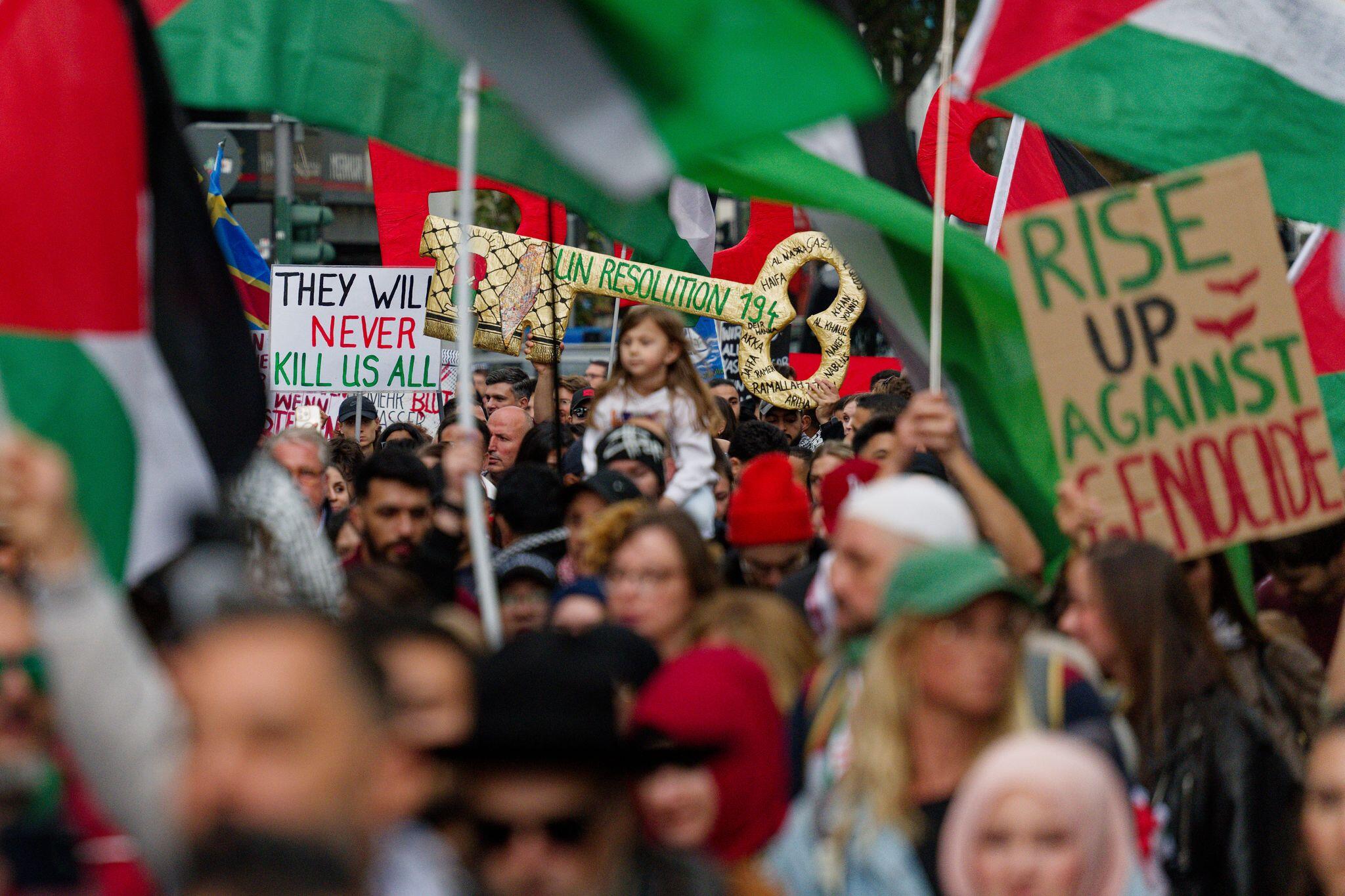 Bundesweit mobilisiert Rekordzahl gegen Gaza-Krieg auf der Straße Mehr als 100.000 Menschen haben nach Schätzung der Veranstalter am Gaza-Protest teilgenommen. Die Polizei nannte etwas niedrigere Zahlen. // Fabian Sommer/dpa Mehr als 100.000 Menschen haben nach Schätzung der Veranstalter am Gaza-Protest teilgenommen. Die Polizei nannte etwas niedrigere Zahlen. // Fabian Sommer/dpa Demonstranten sprechen von einem «Genozid» an den Palästinensern, was die israelische Regierung strikt bestreitet. // Fabian Sommer/dpa Auch der jüdische Musiker Michael Barenboim wirft der israelischen Regierung einen Genozid vor. // Fabian Sommer/dpa Sehr viele Transparente erhoben den Vorwurf des «Völkermords», den Israel strikt zurückweist. // Henning Kaiser/dpa Zehntausende zogen durch Berlin-Mitte zur Siegessäule. // Annette Riedl/dpa Tausende haben sich in Berlin für eine Demonstration gegen den Gaza-Krieg versammelt. // Annette Riedl/dpa Die Demonstration startete am Alexanderplatz. // Annette Riedl/dpa Es waren viele palästinensische Fahnen zu sehen. // Annette Riedl/dpa Menschen trugen Fahnen und Schilder. // Annette Riedl/dpa von dpa TEILEN  27.09.2025 Berlin – Die Veranstalter sprechen von mehr als 100.000 Menschen, die gegen die israelische Kriegsführung protestieren, die Polizei von 60.000. Ihre Forderungen richten sich auch an die Bundesregierung. Rund zwei Jahre nach Beginn des Gaza-Kriegs haben sich in Berlin so viele Menschen wie noch nie in Deutschland an Protesten gegen das israelische Vorgehen beteiligt. Die Veranstalter sprachen von mehr als 100.000 Menschen – die Polizei schätzte die Zahl auf etwa 60.000. Beides übertrifft die bis dahin größte deutsche Gaza-Demonstration mit 50.000 Menschen im Sommer in Berlin. Eine Polizeisprecherin sprach von einem «sehr mehrheitlich friedlichen Verlauf». Es habe am Rande etwa 30 «Freiheitsbeschränkungen» gegeben, davon 20 wegen einer Sachbeschädigung vor der Demonstration. Aktivisten hatten Sprüche auf die Straße gemalt. Die Polizei hatte nach eigenen Angaben im ganzen Berliner Stadtgebiet etwa 1.800 Beamte im Einsatz. Am Nachmittag waren Zehntausende vom Roten Rathaus in Berlin-Mitte zu einer Kundgebung an der Siegessäule im Tiergarten gezogen. Die Demonstranten forderten unter anderem den sofortigen Stopp deutscher Waffenexporte an Israel, Zugang für humanitäre Hilfe nach Gaza sowie EU-Sanktionen gegen Israel. Breites Bündnis hat aufgerufen Zu den Protesten hatte ein Bündnis von etwa 50 Gruppen aufgerufen, darunter propalästinensische Gruppen, Medico International, Amnesty International und die Partei Die Linke. Linken-Chefin Ines Schwerdtner erklärte am Abend: «Was wir heute erlebt haben, ist beeindruckend: Mehr als 100.000 Bürgerinnen und Bürger sind nach Berlin gekommen, um Solidarität mit Palästina zu zeigen – und zwar friedlich und kraftvoll.» Zum Auftakt hatte Schwerdtner bereits am Nachmittag eine kurze Rede gehalten. Sie sprach von einem Völkermord in Gaza und von einer Mitschuld der Bundesregierung. Die Kritik richte sich gegen die israelische Regierung unter Ministerpräsident Benjamin Netanjahu. «Aber unsere Solidarität gilt den Menschen – in Palästina wie in Israel, die sich gegen die extrem rechte Regierung stellen», sagte die Linken-Vorsitzende. Israelische Regierung weist Kritik zurück Die israelische Regierung weist den Vorwurf des Völkermords strikt zurück. Auslöser des Gaza-Kriegs war der Terrorangriff der Hamas auf Israel am 7. Oktober 2023, bei dem etwa 1.200 Menschen getötet und mehr als 250 Geiseln in den Gazastreifen verschleppt wurden. Die israelische Regierung reagierte mit großflächigen Bombardements und einer Bodenoffensive. Tausende Menschen wurden getötet. Internationale Organisationen und die Vereinten Nationen haben für Teile des Gazastreifens eine Hungersnot erklärt und immer wieder direkt Israels Abriegelung des Gebiets für den Mangel an Nahrung verantwortlich gemacht. Israels Regierung sagt dagegen, es würden ausreichend Lebensmittel in den Gazastreifen gebracht und wirft der Hamas vor, humanitäre Hilfe abzugreifen. Viele rote Fahnen Auf der Großdemo in Berlin-Mitte wurde in Sprechchören «Free, free Palestine», «Viva Palestina» und «Hoch die internationale Solidarität» skandiert. Auf Plakaten waren Forderungen wie «Gaza – Stoppt das Massaker», «Nie wieder für alle» und «Freiheit für Palästina» zu sehen. Viele trugen rote Fahnen und palästinensische Flaggen. Von einer Bühne ermahnte ein Organisator die Teilnehmerinnen und Teilnehmer, keine Zeichen verbotener Organisationen zu zeigen und keine Sprüche zu skandieren, die ein Einschreiten der Polizei zur Folge hätten. Den Vorwurf des Völkermords erhebt auch der jüdische Musiker Michael Barenboim, einer der Initiatoren der Demonstration, der abends bei der Kundgebung an der Siegessäule sprach. Auch Auftritte der Hiphopper K.I.Z. und Pashanim standen auf dem Programm. Demos auch in Düsseldorf und in Kreuzberg Auch in Düsseldorf gingen nach Angaben der Polizei 12.000 Menschen auf die Straße, um auf die Situation der Palästinenser im Gazastreifen aufmerksam zu machen. Es gab demnach keine nennenswerten Zwischenfälle. Anders sah es bei einer kleineren Gaza-Demo mit etwa 1.200 Menschen in Berlin-Kreuzberg aus, die unabhängig von der Großveranstaltung in der Innenstadt lief. Sie wurde nach Angaben der Polizei wegen Straftaten aufgelöst. Einige Teilnehmerinnen und Teilnehmer, die nicht abzogen, hielt die Polizei zeitweise fest. Dabei sei es zu einem medizinischen Notfall bei einer Person gekommen, ergänzte die Polizei in sozialen Netzwerken.