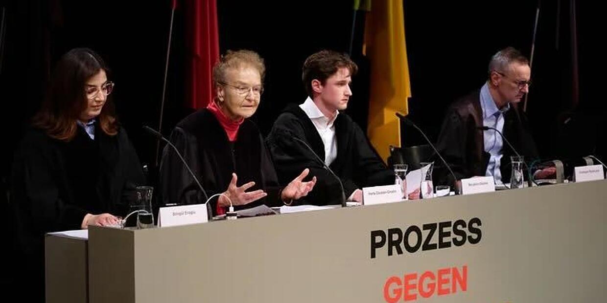Unter dem Titel «Prozess gegen Deutschland» argumentieren und debattieren nach Raus Idee keine Schauspieler mit Textbuch. Sondern gut 30 Expertinnen und Experten, Juristinnen und Juristen - noch an vier weiteren Terminen dieses Wochenendes. Das fiktive Gerichtsszenario wird auch live auf der Website des Theaters ausgestrahlt. Eine Geschworenenjury aus sieben Hamburger Bürgern und Bürgerinnen soll am Sonntagabend das Urteil fällen.