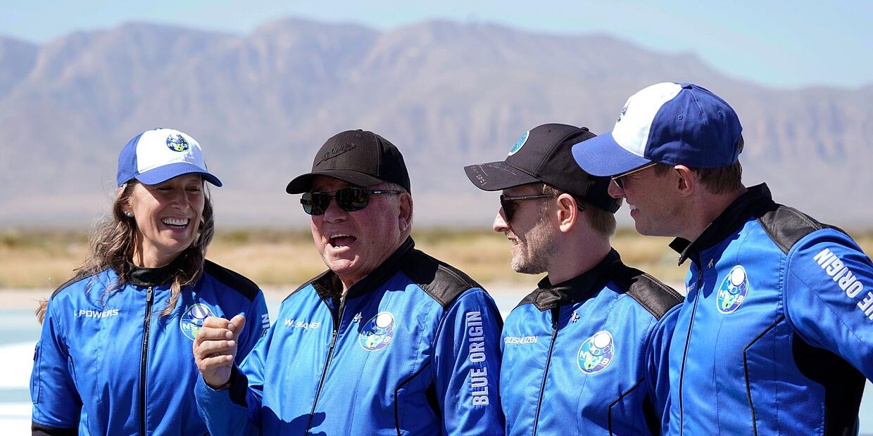 Mit einem Ausflug ins All an Bord eines Raumschiffs von Amazon-Gründer Jeff Bezos macht Shatner 2021 als damals ältester All-Ausflügler Schlagzeilen. «Es war unbeschreiblich», sagt er unter Tränen nach seiner Rückkehr. «Diese Erfahrung hat mich so bewegt. Ich bin so voller Emotionen. Ich bin überwältigt, ich hatte ja keine Ahnung.» In einem knallblauen Raumanzug hatte er mit 90 Jahren an Bord des Raketensystems «New Shepard» den rund zehnminütigen Ausflug ins All, zeitweise mit Schwerelosigkeit, unternommen.