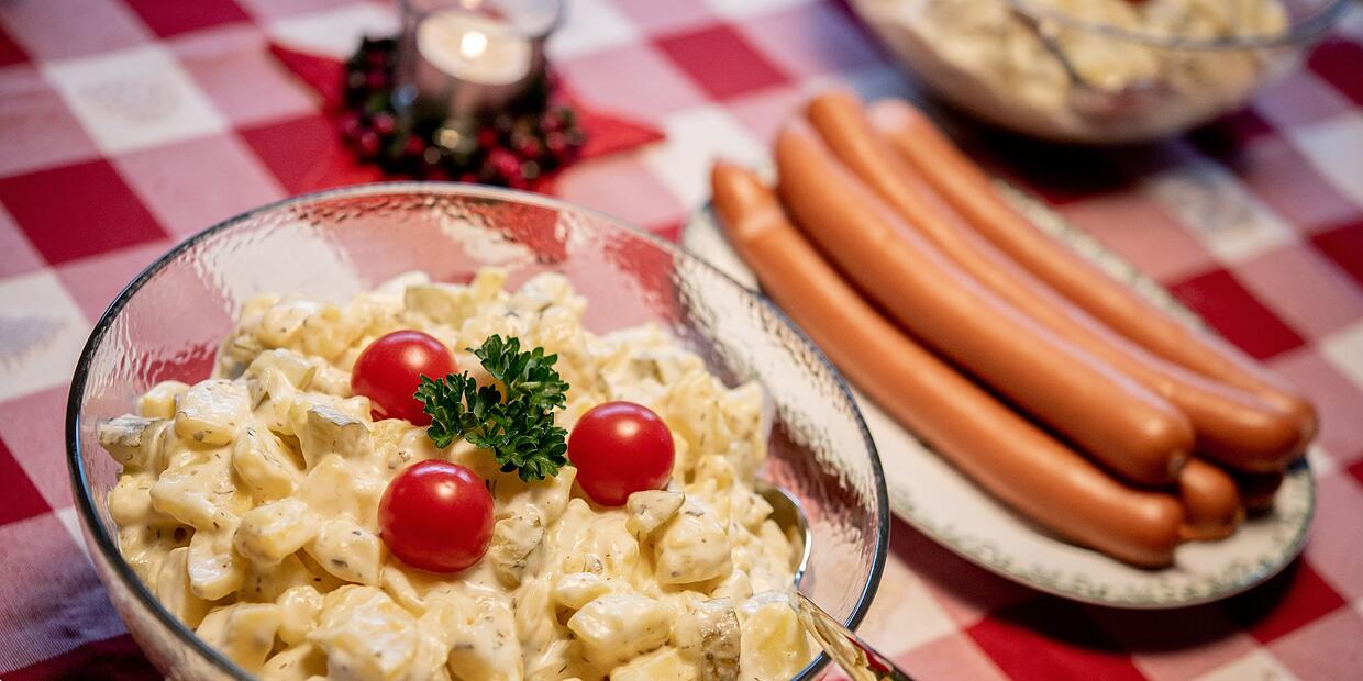 Gute Nachrichten für Fans von Kartoffelsalat mit Würstchen: Für das beliebte Weihnachtsgericht müssen Verbraucherinnen und Verbraucher vor den Festtagen in diesem Jahr nicht ganz so tief in die Tasche greifen. 7,10 Euro kostet die Variante mit Mayonnaise im Durchschnitt, 2024 waren es 7,29 Euro. Das geht aus Berechnungen des arbeitgebernahen Instituts der deutschen Wirtschaft (IW) hervor, die auf Preisdaten der Supermarktkette Rewe basieren. Index-Grundlage sind demnach Rezepte auf Basis von Essig-Öl oder Mayonnaise für jeweils vier Personen.