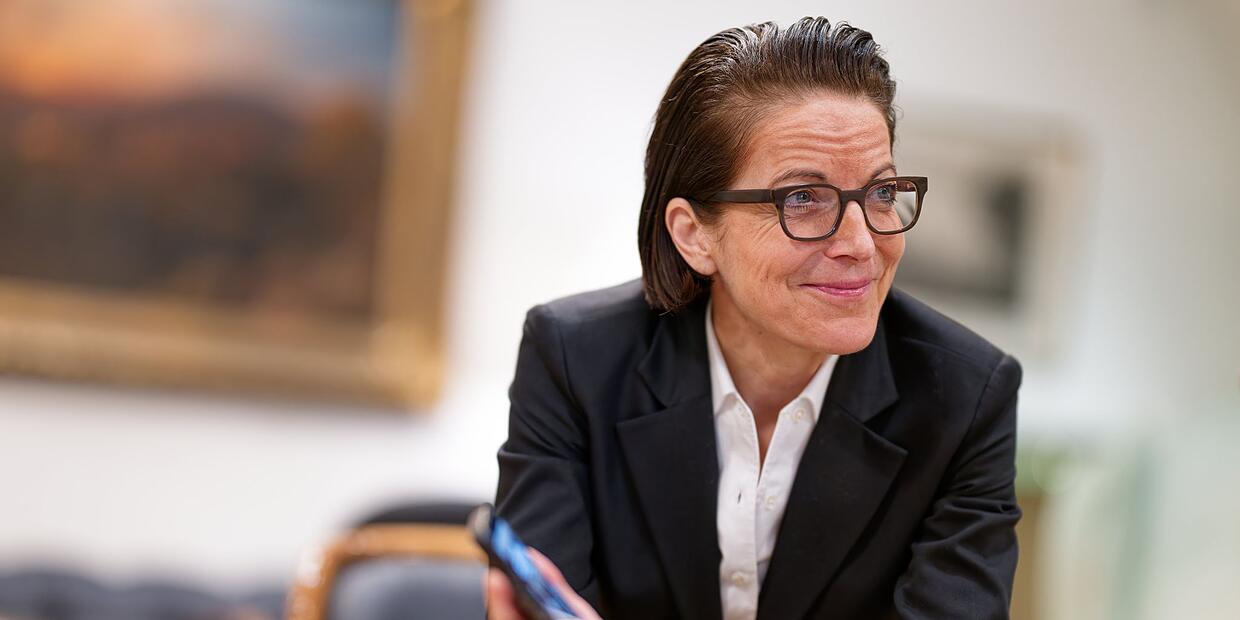 «Guten Morgen, guten Tag. Guten Abend, gute Nacht», erklingt der Schlager von Peter Menger. Die Frau im schwarzen Anzug und weißen Hemd, Hornbrille, dunkelbrauner Bob nach hinten frisiert, singt mit, lächelt, wippt mit dem Kopf während sie von ihrem Büro durch die Hotellobby läuft, am Empfang vorbei und auf den Vorplatz hinaus. Die Frau ist Caroline von Kretschmann, Chefin des Luxushotels «Europäischer Hof Heidelberg» - und Tiktok-Star. Das Video wurde bisher rund 7,9 Millionen Mal angeschaut.